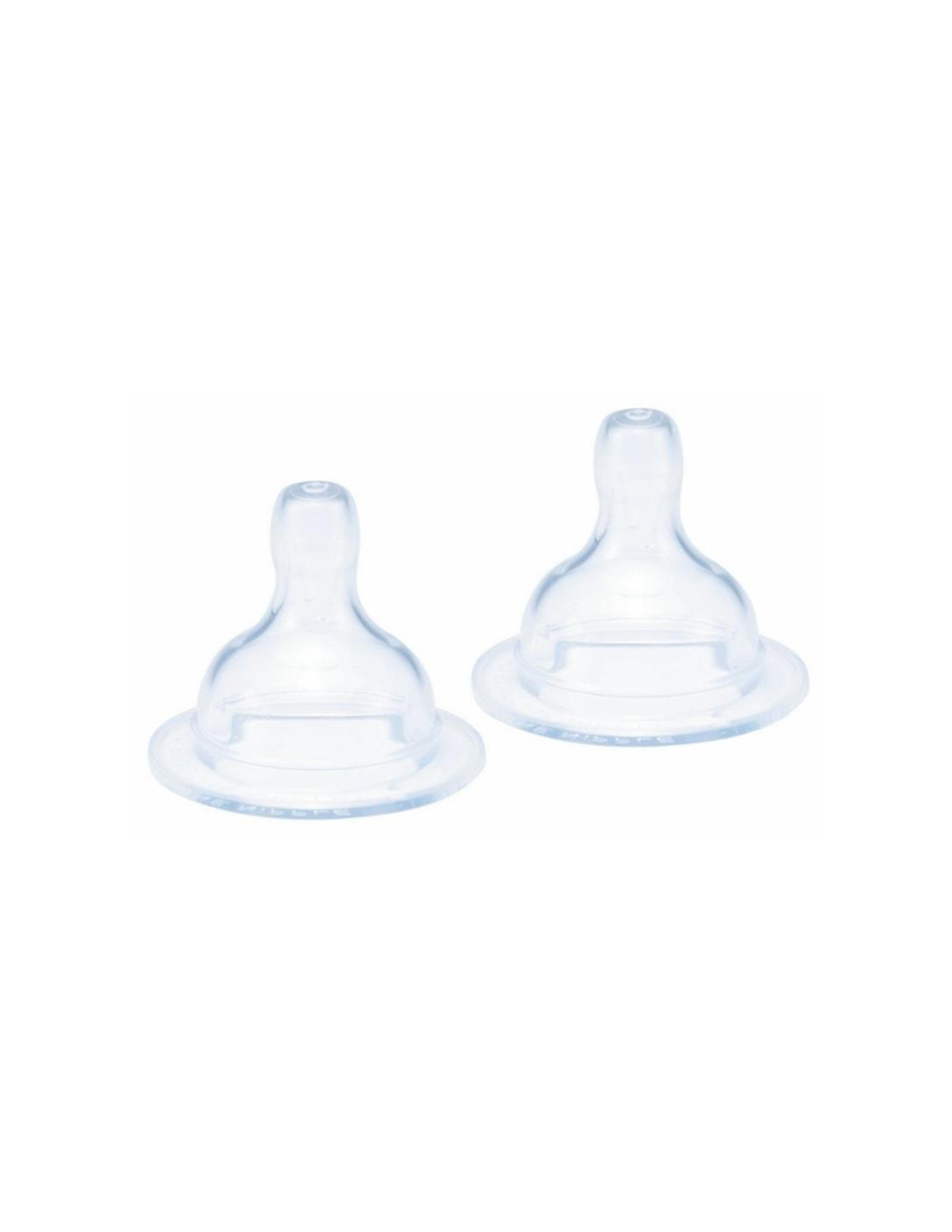 Velocidades: Disponible en cuatro velocidades: La tetina Bebé Due Medic de flujo lento es para bebés de 0 a 3 meses. Es ideal para los primeros días porque te permite combinar el pecho con el biberón. Le puedes dar las pequeñas tomas de agua o glucosa. La tetina de flujo medio es para bebés de 3 meses y hasta los 6. Después ya le podrás poner la tetina de flujo rápido para darle cereales. La variable se adapta a todos los usos ya que según la reclinación de la botella cumple con la velocidad 1, 2 o 3.