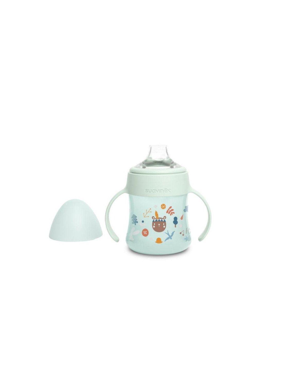 Incorpora asas adaptadas a manitas pequeñas, la rosca con asitas es adaptable a cualquier biberón de Suavinex, exceptuando el biberón Zero.ZeroTM.