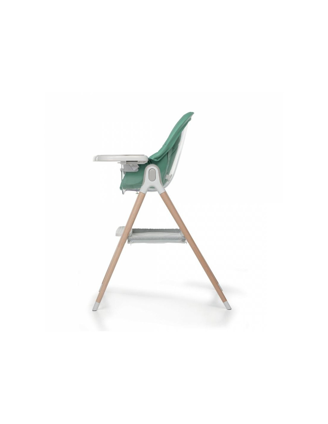 El asiento ergonómico se puede reclinar en 3 posiciones, dispone de reposapiés y cinturón de seguridad de 5 puntos, además de una bandeja doble extraíble y una amplia red portaobjetos.