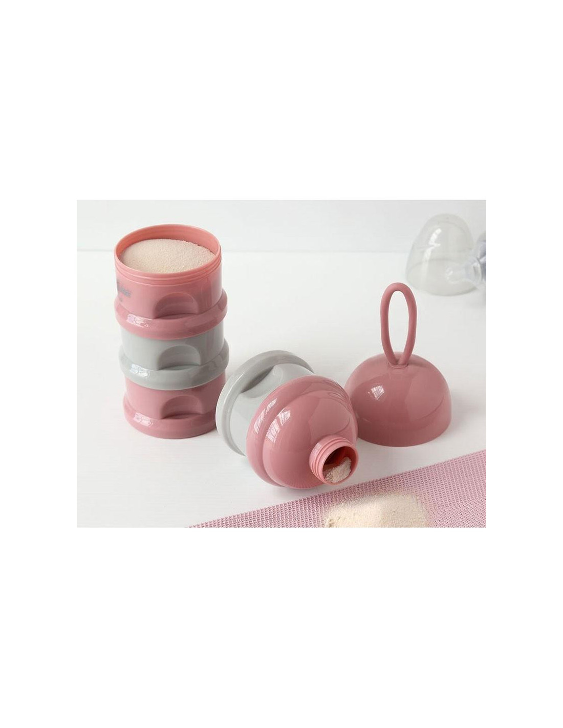 Además del cierre en rosca entre depósitos, cada uno de ellos incluye una tapa para evitar derrames, y el último además se cierra con un embudo que permitirá verter la leche en polvo directamente en el biberón con comodidad y rapidez.