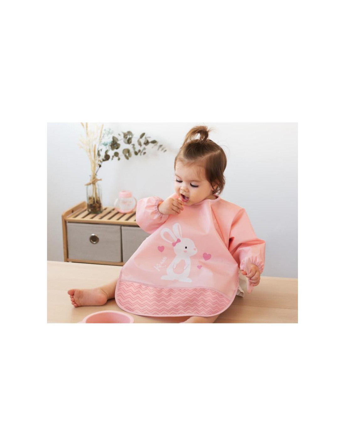 BABERO PLASTIFICADO CON MANGAS CONEJO ROSA