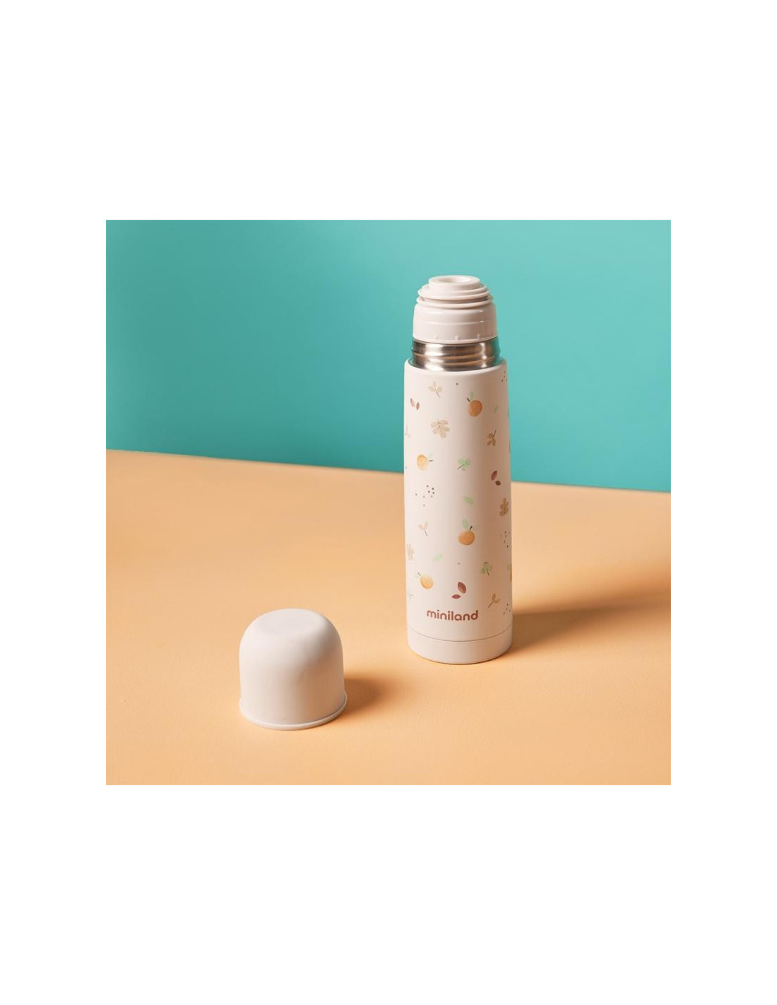 La gama de termos líquidos de 500ml de Miniland consta de dos acabados diferentes en función de los gustos de los papás. Podrán optar por el tacto exterior gomoso o por el clásico acabado metálico.