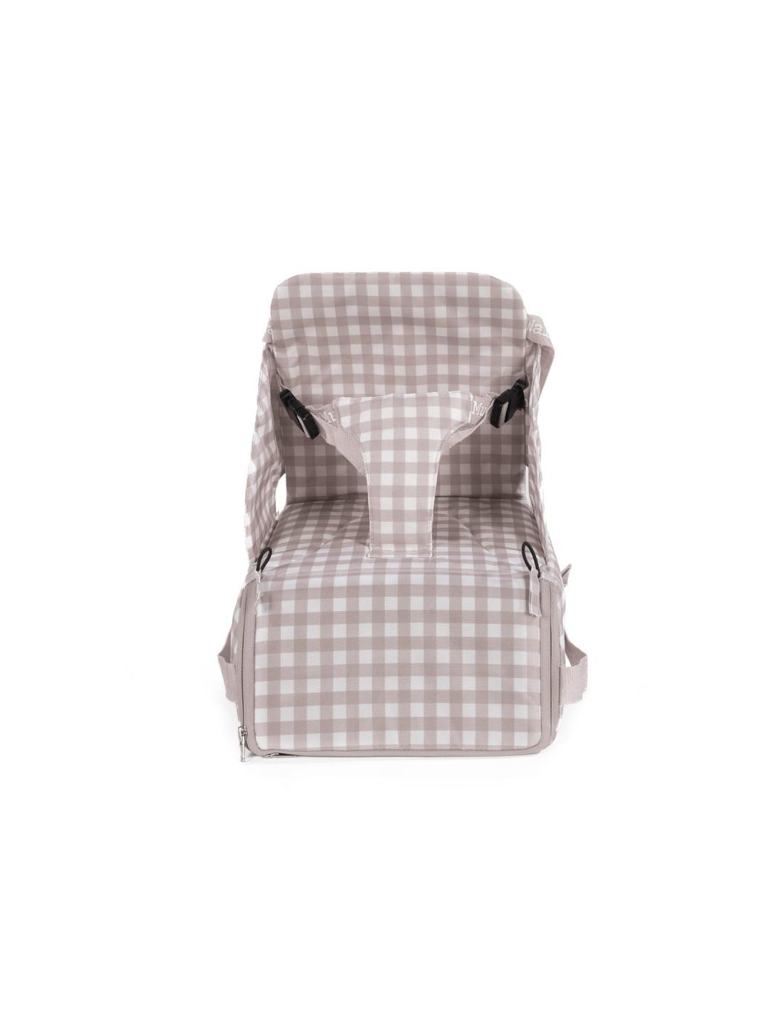 Esta trona portátil para bebés Caetana Sand en cuadros beige es la solución perfecta para padres en movimiento que desean ofrecer a sus pequeños un asiento seguro y cómodo en cualquier lugar. Con un diseño moderno de cuadros en tonos neutros, esta trona que combina funcionalidad y estilo es la solución perfecta para alimentar a tu bebé en cualquier lugar. Su diseño plegable permite llevarla fácilmente a cualquier lugar, ya sea a un restaurante, de viaje o a la casa de los abuelos. Cuenta con una correa para llevarla cómodamente al hombro. Incluye un compartimento de almacenamiento en la base, perfecto para guardar pañales, toallitas u otros accesorios esenciales del bebé. Se adapta a la mayoría de las sillas de adulto estándar, ofreciendo versatilidad y comodidad en diferentes entornos. Incluye correas ajustables para fijarla de manera rápida y segura a al respaldo y al asiento. Las medidas mínimas de las sillas de adulto para poder fijar la trona son: altura mínima de respaldo 48.5 cm, anchura mínima del asiento 36 cm y profundidad mínima del asiento 34 cm. Dispone de arnés ajustables para sujetar bien al bebé proporcionando máxima seguridad durante las comidas. Fabricada con materiales de alta calidad, duraderos y resistentes, ideal para el uso diario. Es muy fácil de limpiar ya que es completamente desenfundable. Esta silla portátil está destinada para bebes que puedan mantenerse sentados por si solos. Desde los 6 meses hasta máximo 3 años o un peso máximo de 15 kgs. Cumple con la normativa EN 16120:2012+A2:2016. Asiento elevador. Walking Mum protege a tu bebé utilizando los mejores tejidos, libres de colorantes azoicos y sustancias nocivas para la salud. Especificaciones: Materiales: 100% Poliéster. Medidas cerrada: 29x36x31 cm.