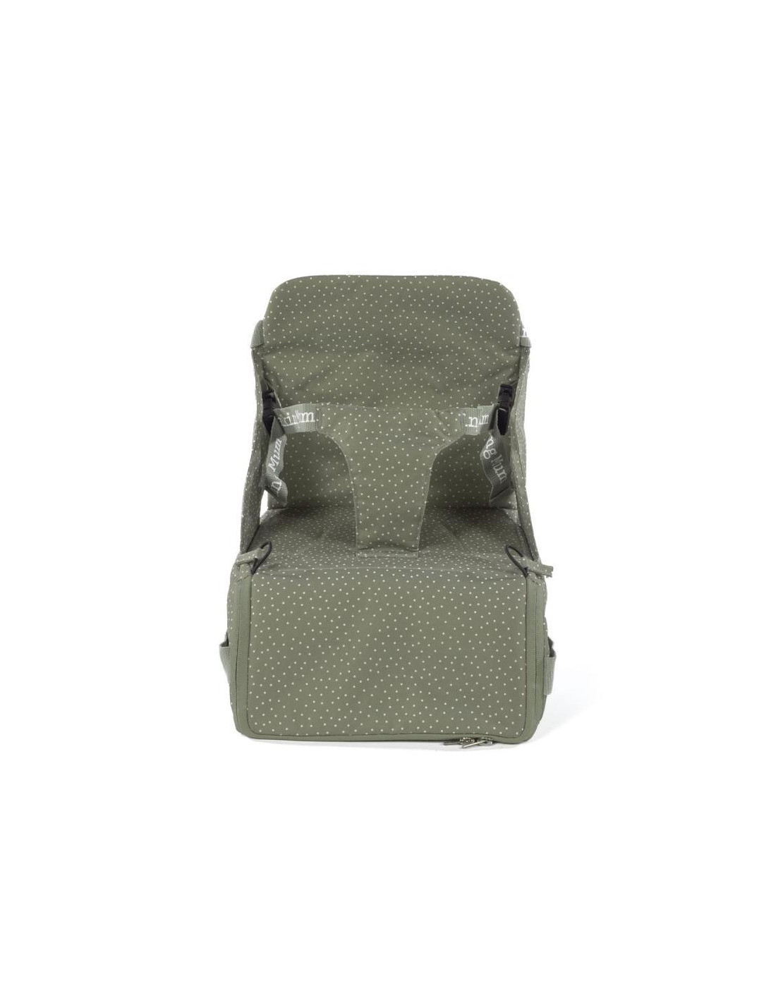 Esta trona portátil para bebés Poppy Musgo con topitos verde es la solución perfecta para padres en movimiento que desean ofrecer a sus pequeños un asiento seguro y cómodo en cualquier lugar. Con un diseño moderno de cuadros en tonos neutros, esta trona que combina funcionalidad y estilo es la solución perfecta para alimentar a tu bebé en cualquier lugar. Su diseño plegable permite llevarla fácilmente a cualquier lugar, ya sea a un restaurante, de viaje o a la casa de los abuelos. Cuenta con una correa para llevarla cómodamente al hombro. Incluye un compartimento de almacenamiento en la base, perfecto para guardar pañales, toallitas u otros accesorios esenciales del bebé. Se adapta a la mayoría de las sillas de adulto estándar, ofreciendo versatilidad y comodidad en diferentes entornos. Incluye correas ajustables para fijarla de manera rápida y segura a al respaldo y al asiento. Las medidas mínimas de las sillas de adulto para poder fijar la trona son: altura mínima de respaldo 48.5 cm, anchura mínima del asiento 36 cm y profundidad mínima del asiento 34 cm. Dispone de arnés ajustables para sujetar bien al bebé proporcionando máxima seguridad durante las comidas. Fabricada con materiales de alta calidad, duraderos y resistentes, ideal para el uso diario. Es muy fácil de limpiar ya que es completamente desenfundable. Esta silla portátil está destinada para bebes que puedan mantenerse sentados por si solos. Desde los 6 meses hasta máximo 3 años o un peso máximo de 15 kgs. Cumple con la normativa EN 16120:2012+A2:2016. Asiento elevador. Walking Mum protege a tu bebé utilizando los mejores tejidos, libres de colorantes azoicos y sustancias nocivas para la salud. Especificaciones: Materiales: 100% Poliéster. Medidas cerrada: 29x36x31 cm.