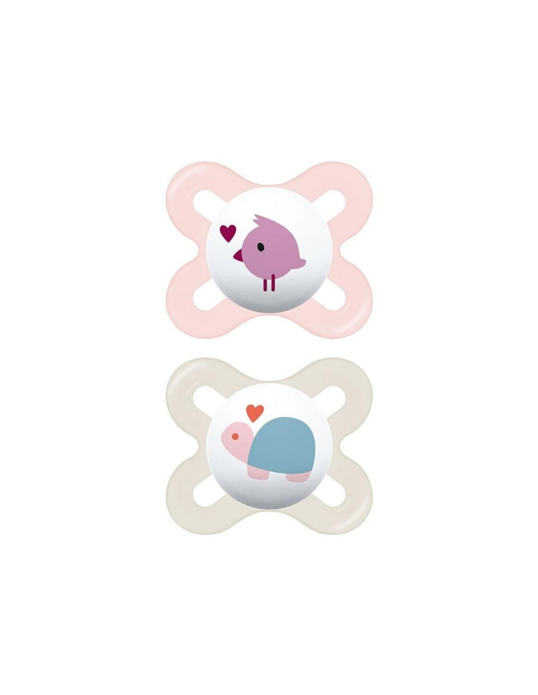 Extra pequeño y ligero. Forma curvada para un máximo confort. Cuidadoso con la piel gracias a los grandes orificios de ventilación y las exclusivas formas cóncavas de MAM en su interior.
