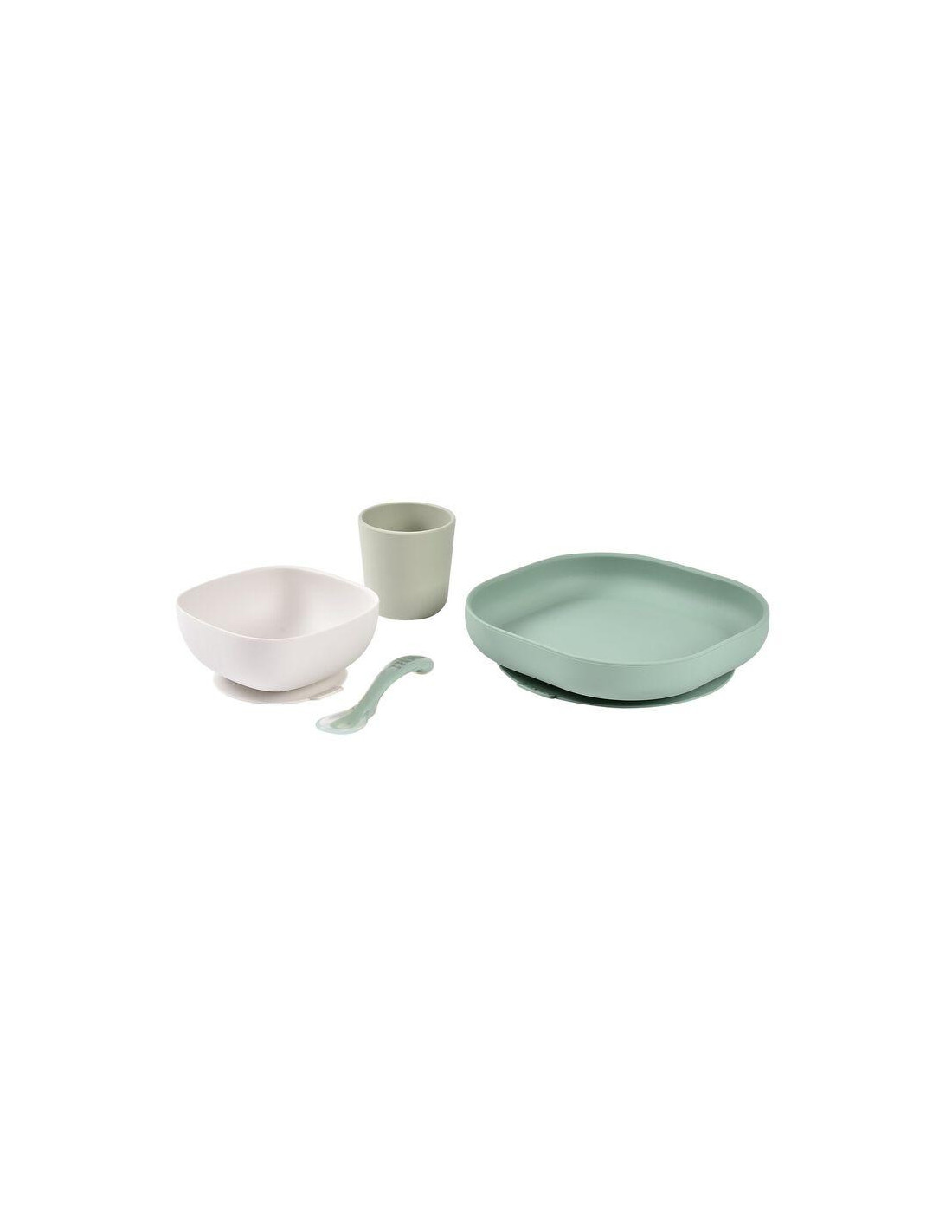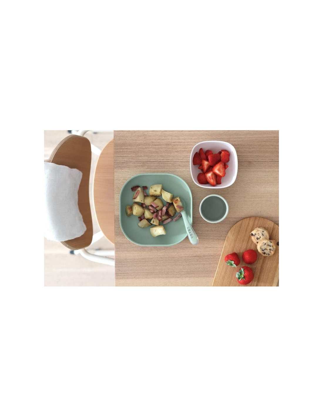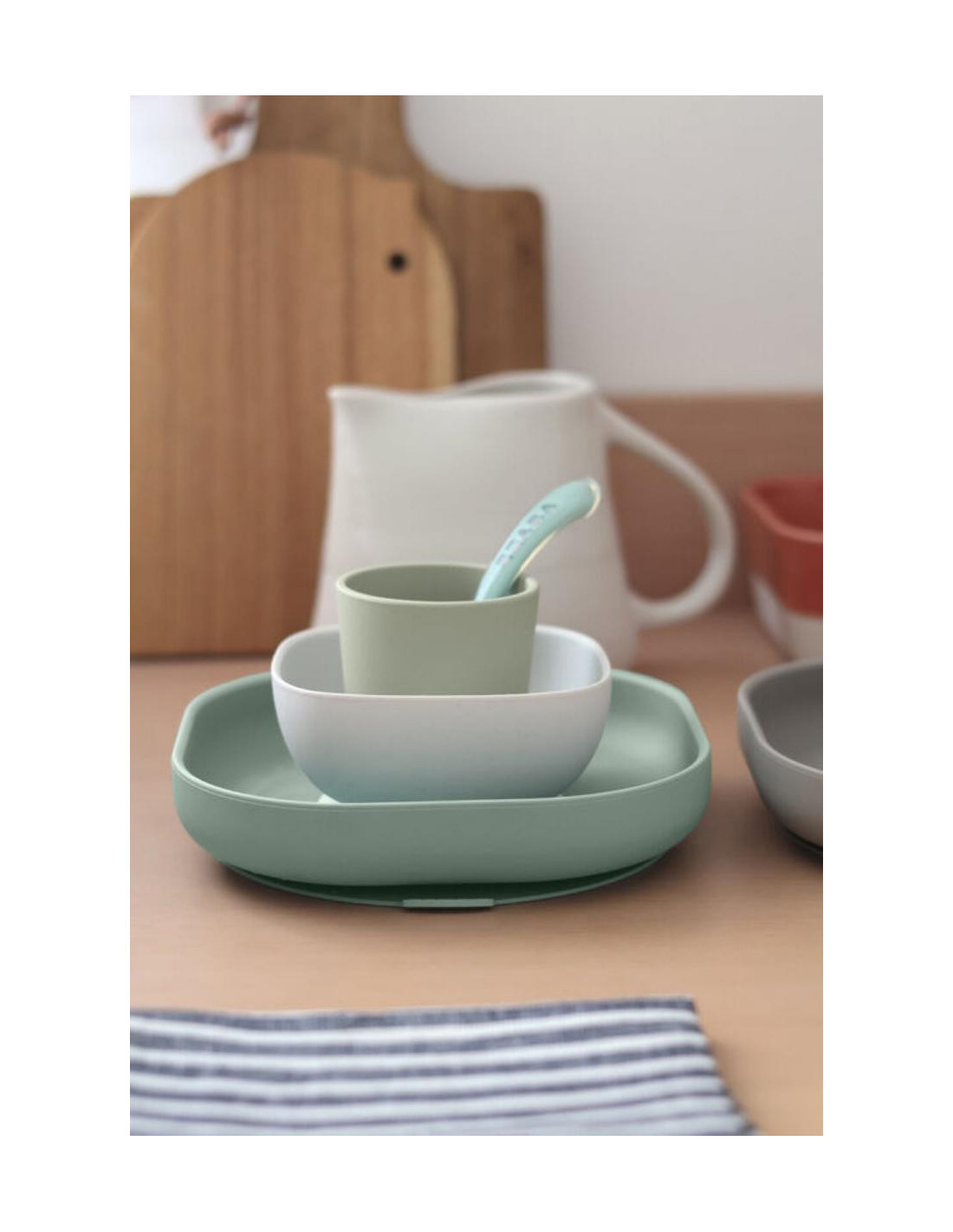 El momento de las primeras comidas es un paso precioso en el descubrimiento de nuevos sabores y de la autonomía de los más pequeños. Una caja de comida de silicona, diseñada para aprender, puede facilitar enormemente esta experiencia. La fiambrera de silicona ofrece todo lo que el bebé y los padres necesitan para las primeras comidas. Se compone del menaje imprescindible para las primeras comidas con sus 4 piezas: un plato y un bol con ventosa, un vasito y una cuchara de silicona de 2ª edad. La ventosa situada bajo el plato y el bol permite fijarlos a la repisa de la mesa o trona, evitando así incidencias y derrames. La discreta pestaña permite a los padres levantar fácilmente el plato y el tazón cuando termina la comida. El diseño y forma ergonómica de estos elementos ayudan a guiar la ingesta de alimentos gracias a sus bordes altos y redondeados, facilitando así el aprendizaje del niño. La cuchara tiene un mango corto y ergonómico, por lo que se adapta perfectamente a las manitas de su hijo. La forma de la cuchara (parte hueca) está especialmente diseñada para adaptarse a la boca de los niños pequeños, facilitando la recogida de la comida. Gracias a su flexibilidad, esta cuchara elimina cualquier riesgo de lesión, garantizando una experiencia alimentaria agradable y segura para tu hijo. 100% en silicona alimentaria de alta calidad, los elementos de esta caja son irrompibles, flexibles y lisos. Están garantizados sin BPA*, PVC ni ftalatos, garantizando la seguridad de tu hijo. Prácticos, los elementos son aptos para lavavajillas y microondas. *de acuerdo con la normativa vigente
