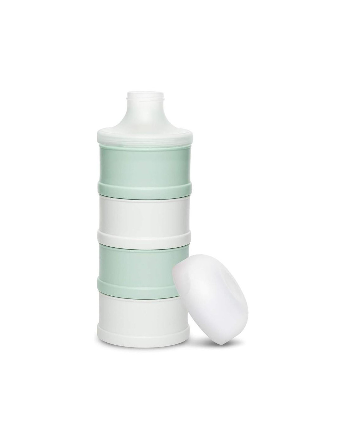 El dosificador de leche se compone por cuatro compartimentos independientes, apilables e intercambiables perfectos para organizar la leche en polvo y cereales de forma fácil