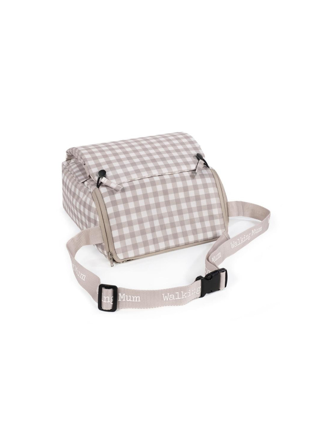 Esta trona portátil para bebés Caetana Sand en cuadros beige es la solución perfecta para padres en movimiento que desean ofrecer a sus pequeños un asiento seguro y cómodo en cualquier lugar. Con un diseño moderno de cuadros en tonos neutros, esta trona que combina funcionalidad y estilo es la solución perfecta para alimentar a tu bebé en cualquier lugar. Su diseño plegable permite llevarla fácilmente a cualquier lugar, ya sea a un restaurante, de viaje o a la casa de los abuelos. Cuenta con una correa para llevarla cómodamente al hombro. Incluye un compartimento de almacenamiento en la base, perfecto para guardar pañales, toallitas u otros accesorios esenciales del bebé. Se adapta a la mayoría de las sillas de adulto estándar, ofreciendo versatilidad y comodidad en diferentes entornos. Incluye correas ajustables para fijarla de manera rápida y segura a al respaldo y al asiento. Las medidas mínimas de las sillas de adulto para poder fijar la trona son: altura mínima de respaldo 48.5 cm, anchura mínima del asiento 36 cm y profundidad mínima del asiento 34 cm. Dispone de arnés ajustables para sujetar bien al bebé proporcionando máxima seguridad durante las comidas. Fabricada con materiales de alta calidad, duraderos y resistentes, ideal para el uso diario. Es muy fácil de limpiar ya que es completamente desenfundable. Esta silla portátil está destinada para bebes que puedan mantenerse sentados por si solos. Desde los 6 meses hasta máximo 3 años o un peso máximo de 15 kgs. Cumple con la normativa EN 16120:2012+A2:2016. Asiento elevador. Walking Mum protege a tu bebé utilizando los mejores tejidos, libres de colorantes azoicos y sustancias nocivas para la salud. Especificaciones: Materiales: 100% Poliéster. Medidas cerrada: 29x36x31 cm.