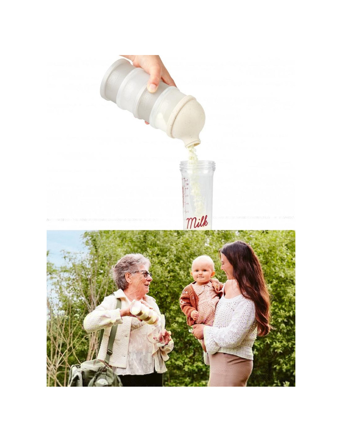 Facilidad de uso: El vertedor ergonómico evita derrames y facilita el llenado del biberón. Su textura antideslizante y el asa de transporte integrada lo hacen cómodo y seguro de usar.