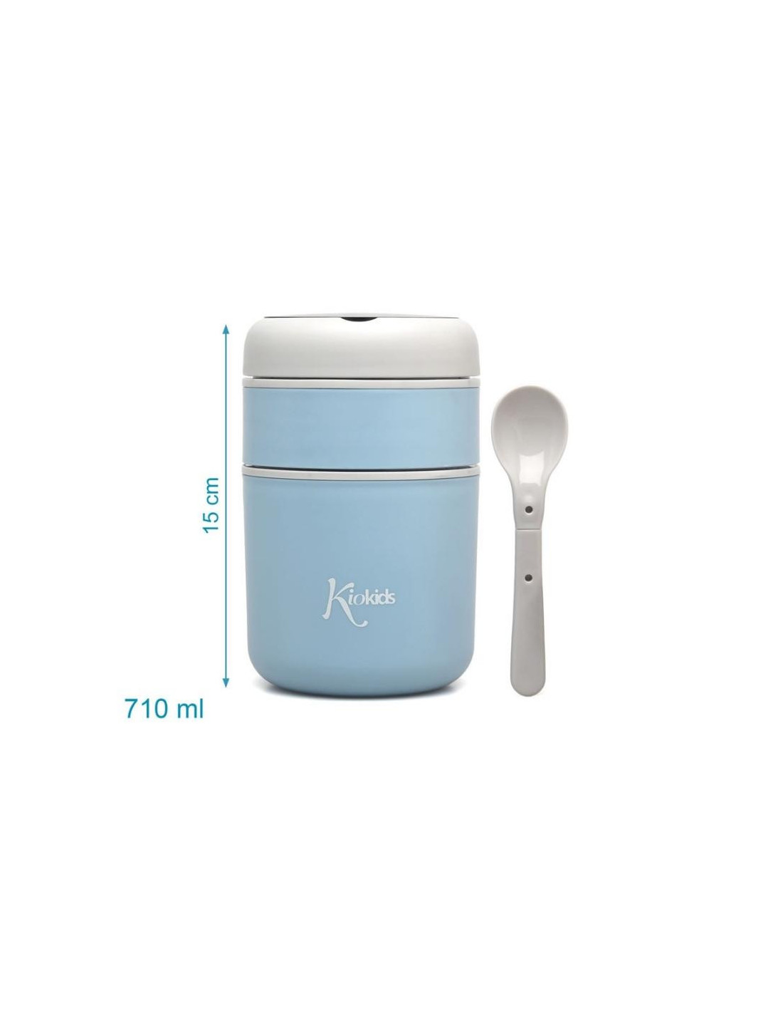 En sus dos compartimentos (180 y 530ml) se puede transportar de forma independiente distintos alimentos, manteniendo su temperatura 4h, gracias a su interior en acero inoxidable 304, con cámara de aire y su cierre hermético en silicona.