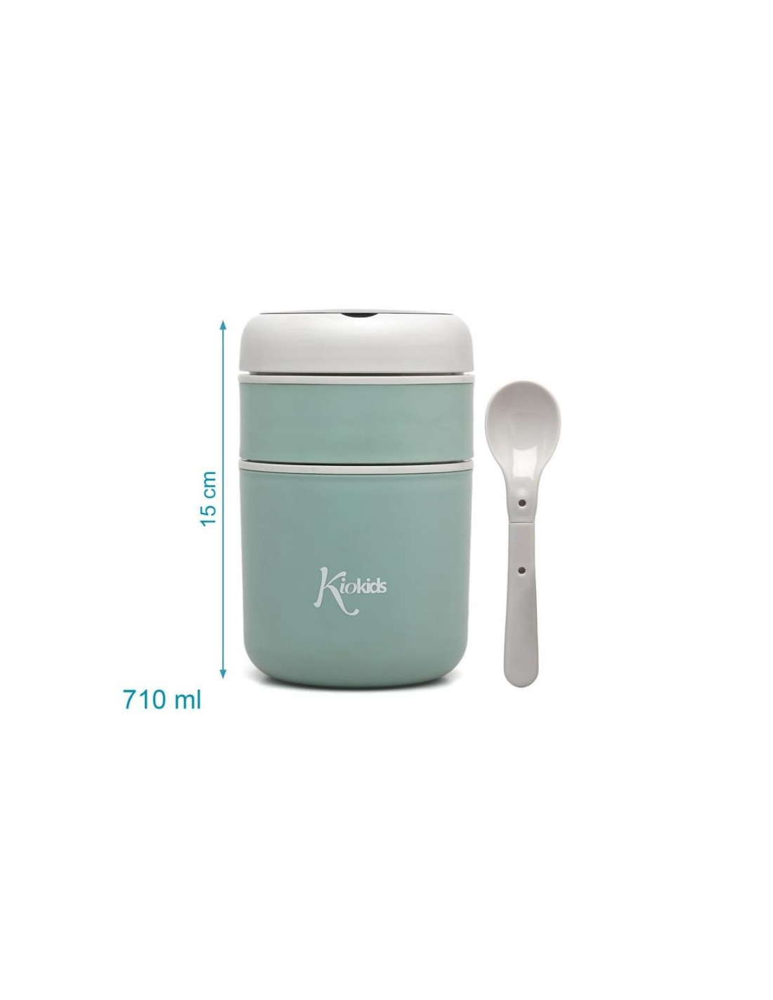 En sus dos compartimentos (180 y 530ml) se puede transportar de forma independiente distintos alimentos, manteniendo su temperatura 4h, gracias a su interior en acero inoxidable 304, con cámara de aire y su cierre hermético en silicona.