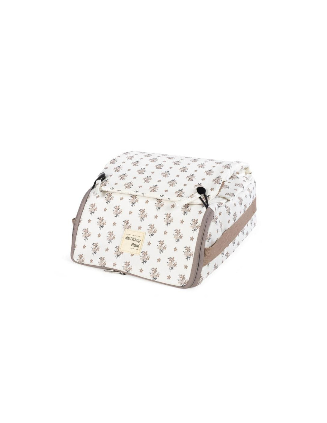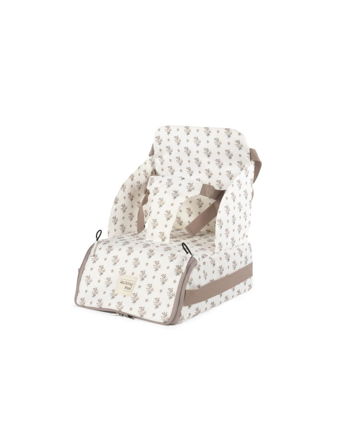 Esta trona portátil para bebés Botton flores es la solución perfecta para padres en movimiento que desean ofrecer a sus pequeños un asiento seguro y cómodo en cualquier lugar. Con un diseño moderno de cuadros en tonos neutros, esta trona que combina funcionalidad y estilo es la solución perfecta para alimentar a tu bebé en cualquier lugar. Su diseño plegable permite llevarla fácilmente a cualquier lugar, ya sea a un restaurante, de viaje o a la casa de los abuelos. Cuenta con una correa para llevarla cómodamente al hombro. Incluye un compartimento de almacenamiento en la base, perfecto para guardar pañales, toallitas u otros accesorios esenciales del bebé. Se adapta a la mayoría de las sillas de adulto estándar, ofreciendo versatilidad y comodidad en diferentes entornos. Incluye correas ajustables para fijarla de manera rápida y segura a al respaldo y al asiento. Las medidas mínimas de las sillas de adulto para poder fijar la trona son: altura mínima de respaldo 48.5 cm, anchura mínima del asiento 36 cm y profundidad mínima del asiento 34 cm. Dispone de arnés ajustables para sujetar bien al bebé proporcionando máxima seguridad durante las comidas. Fabricada con materiales de alta calidad, duraderos y resistentes, ideal para el uso diario. Es muy fácil de limpiar ya que es completamente desenfundable. Esta silla portátil está destinada para bebes que puedan mantenerse sentados por si solos. Desde los 6 meses hasta máximo 3 años o un peso máximo de 15 kgs. Cumple con la normativa EN 16120:2012+A2:2016. Asiento elevador. Walking Mum protege a tu bebé utilizando los mejores tejidos, libres de colorantes azoicos y sustancias nocivas para la salud. Especificaciones: Materiales: 100% Poliéster. Medidas cerrada: 29x36x31 cm.