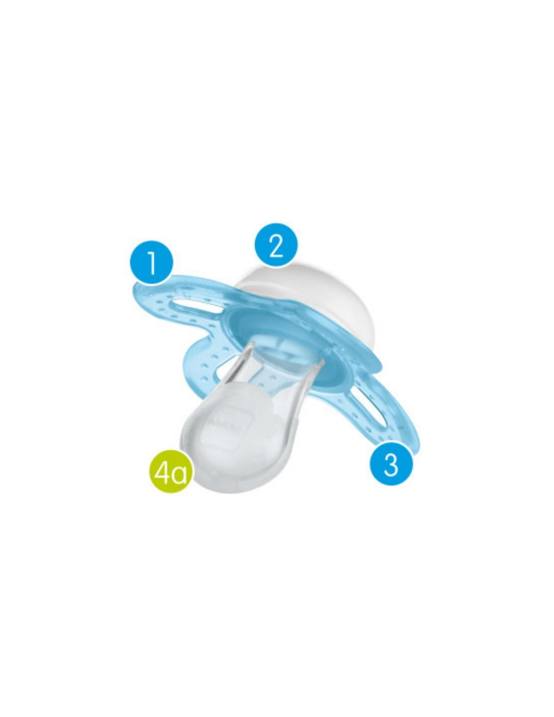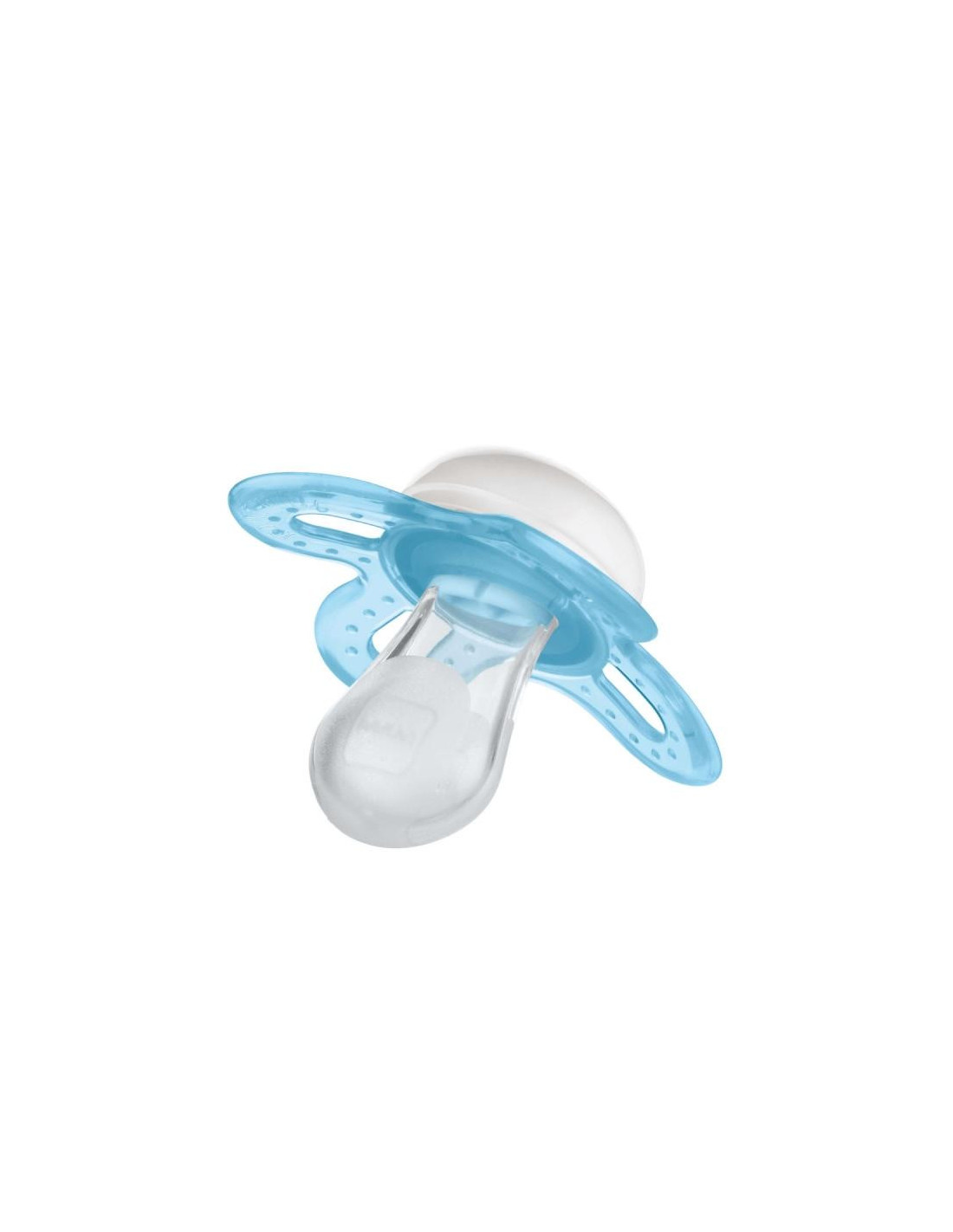 Extra pequeño y ligero. Forma curvada para un máximo confort. Cuidadoso con la piel gracias a los grandes orificios de ventilación y las exclusivas formas cóncavas de MAM en su interior.