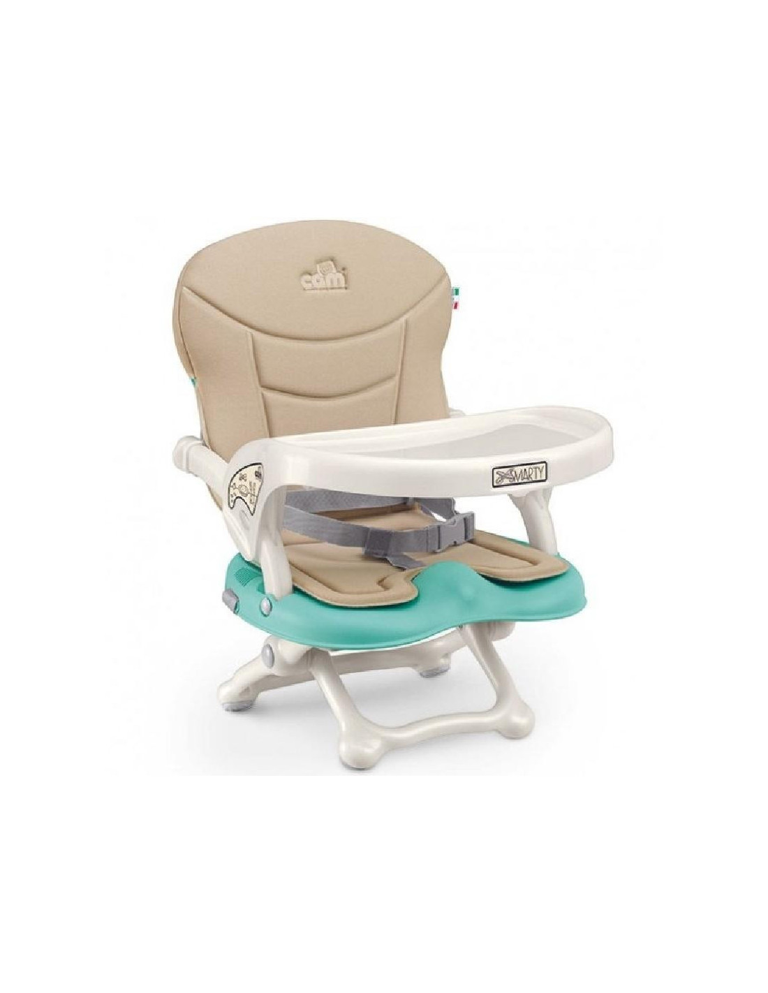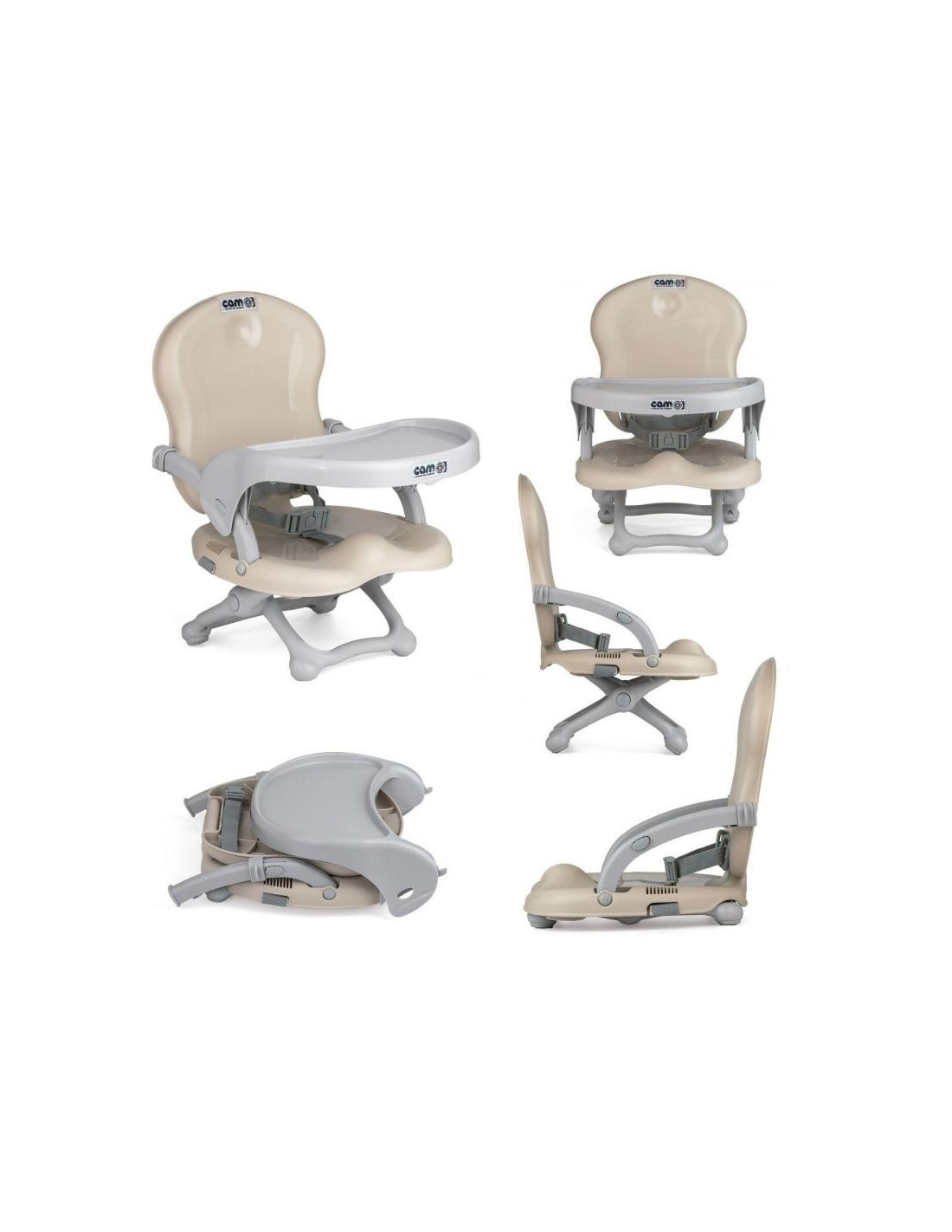 Trona Smarty Cam, sujeción a la silla mediante cinturones regulables, 4 posiciones (0-18 cm), gran bandeja extraíble, asiento anatómico con acolchado lavable, cinturones de 3 puntos, base con gomas antideslizantes, silla evolutiva con el crecimiento del bebé: ideal para casa, viaje, piscinas, playas, etc?