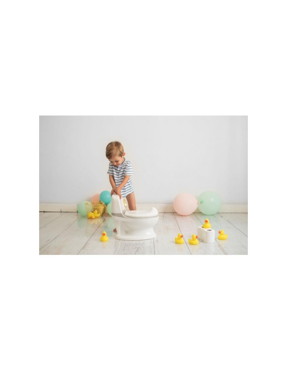 Cuenta con una tapa y divertida cisterna cuyo sonido simula el de una cisterna.