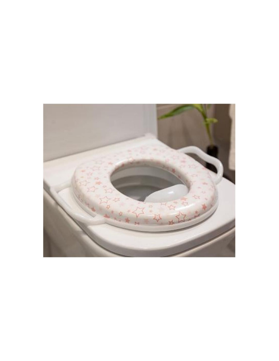 Reductor de WC acolchado y plastificado, ideal para la transición del orinal al WC. Se coloca sobre el asiento del WC reduciendo el hueco de este. Además, al ser acolchado resulta mucho más cómodo para el pequeño, que además se sentirá más seguro gracias a las dos asas laterales.