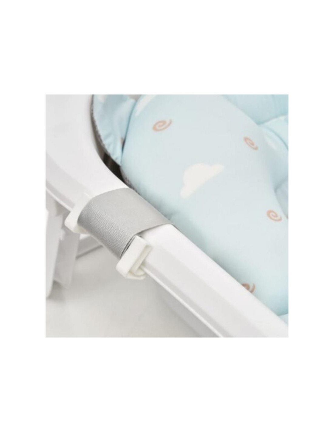 Tiene tres cinturones de seguridad con broches que se sujetan al borde de la bañera, de esta manera, el cojín no se deslizará ni se moverá para bañar de forma tranquila al bebé.