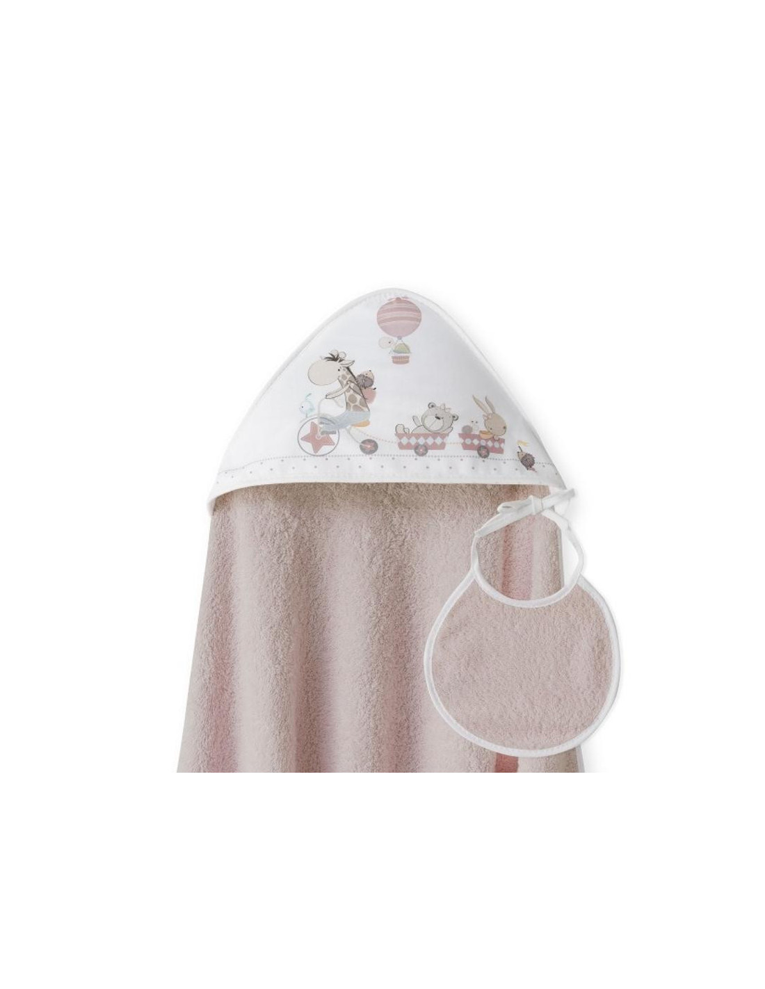 CAPA BAÑO MAXI JIRAFA BICI ROSA EMPOLVADO+BABERO INTERBABY