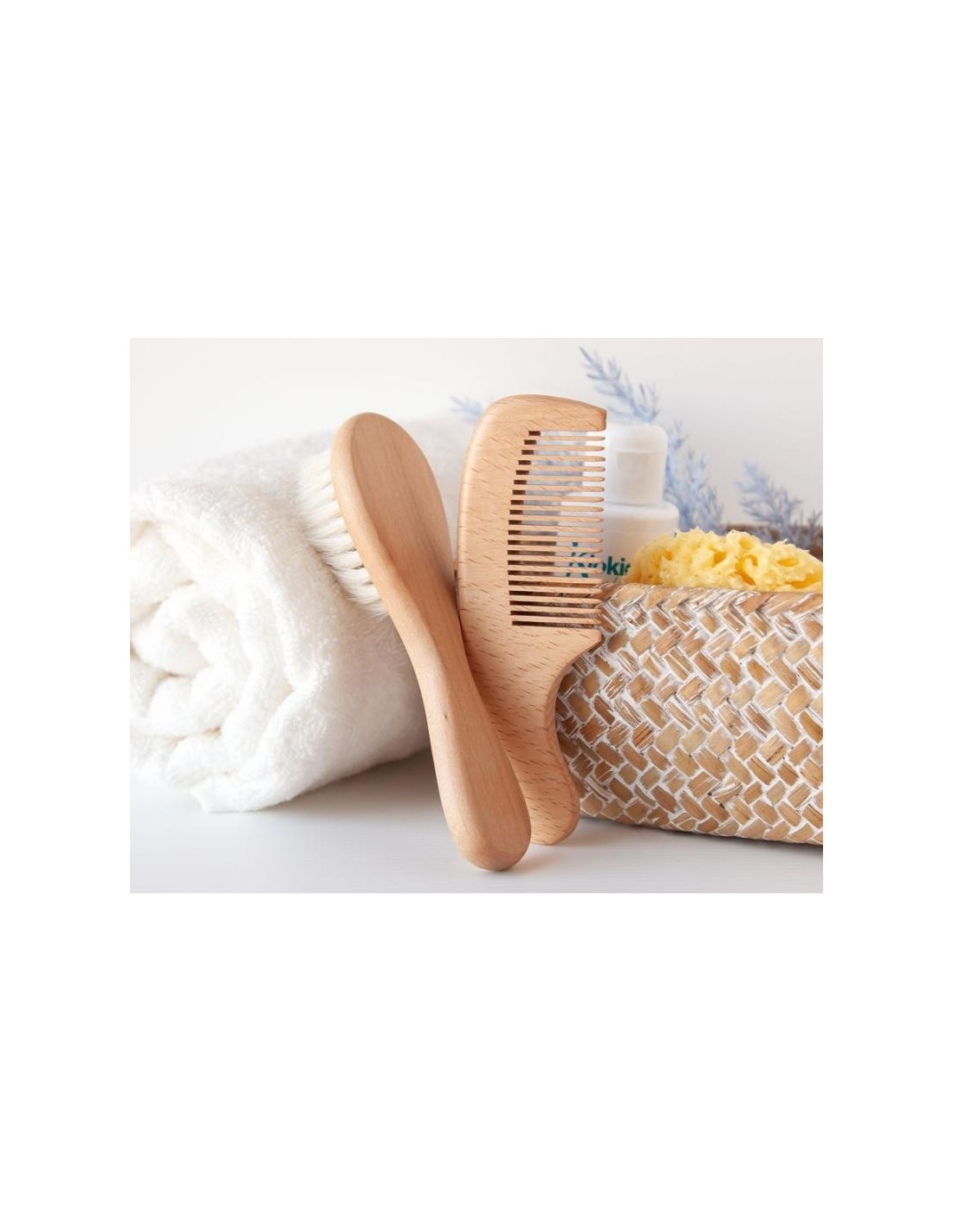 SET PEINE+CEPILLO MADERA CERDAS EXTRASUAVES KIO KIDS