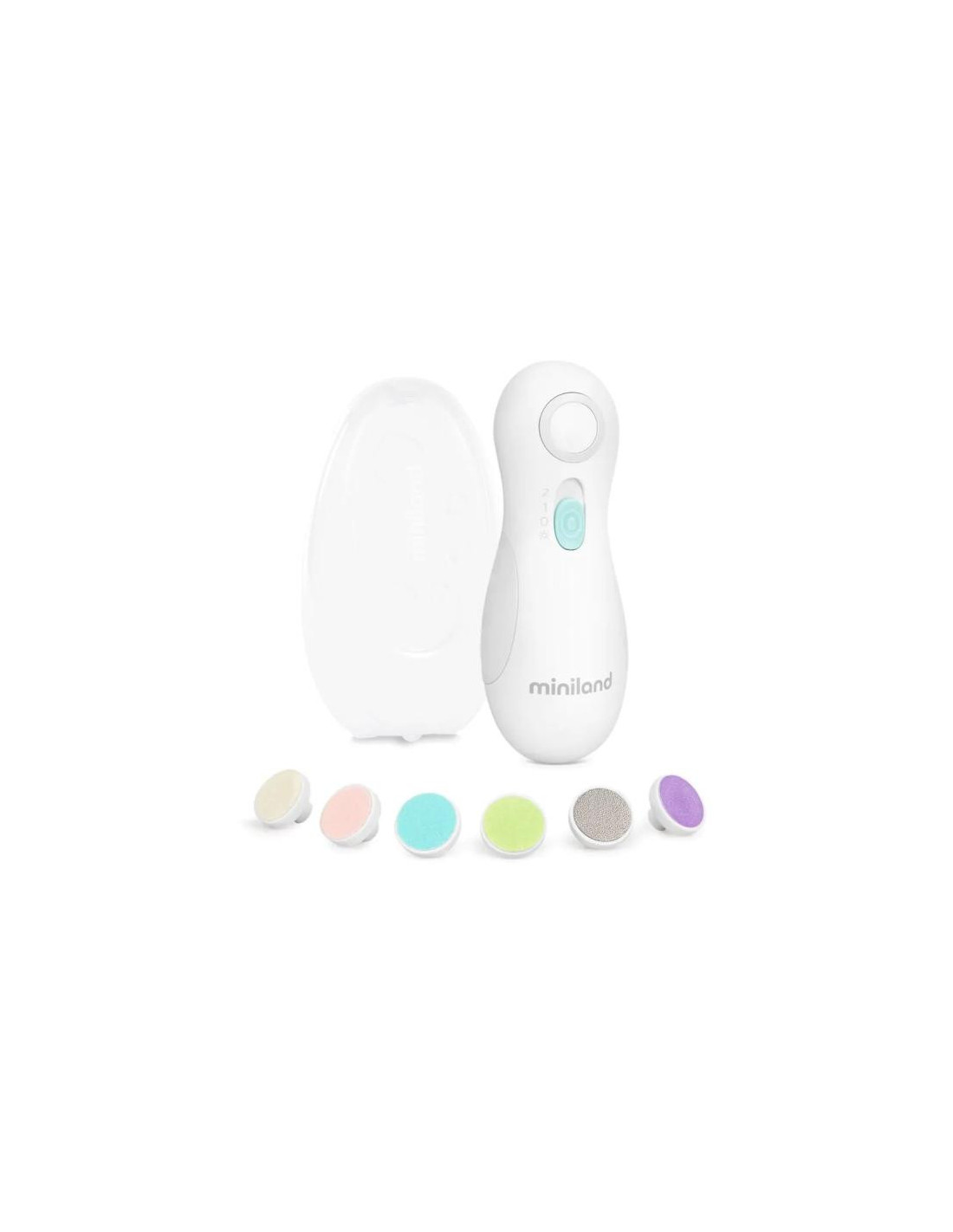 6 cabezales diferentes para toda la familia La lima incluye 6 cabezales diferentes intercambiables para limar las delicadas uñas del bebéde forma rápida, fácil y segura y además para adaptarse a las necesidades de toda la familia. Tiene 4 cabezales que se adaptan a las uñas de los más pequeños, con diferentes rugosidades (ultrafina, fina, media y gruesa). Y dos para adultos (pulir y dar brillo). Los cabezales se intercambian fácilmente.2 velocidades Dispone de dos velocidades (alta y baja) para que pueda adaptarse a todas las familias y limar las uñas con suavidad.Segura Gracias a la función de autoapagado por seguridad puedes estar tranquila mientras limas las uñas del bebétanto de las manos como de los pies, ya que en cuanto entra en contacto con la piel, para su funcionamiento.Perfecta para llevártela a cualquier lado La lima de Miniland es perfecta para llevártela a todas partes, ya que además de ser pequeña y compacta incluye una cajita donde podrás guardar tanto la lima como sus cabezales para que la tengas siempre a mano.Motor silencioso Gracias a su motor silencioso podrás limarle las uñas a tu bebésin necesidad de despertarlo.Ergonómica y fácil de usar Diseñada para las delicadas y finas uñas de los bebés, permite limar las uñas de forma rápida, y sencilla.
