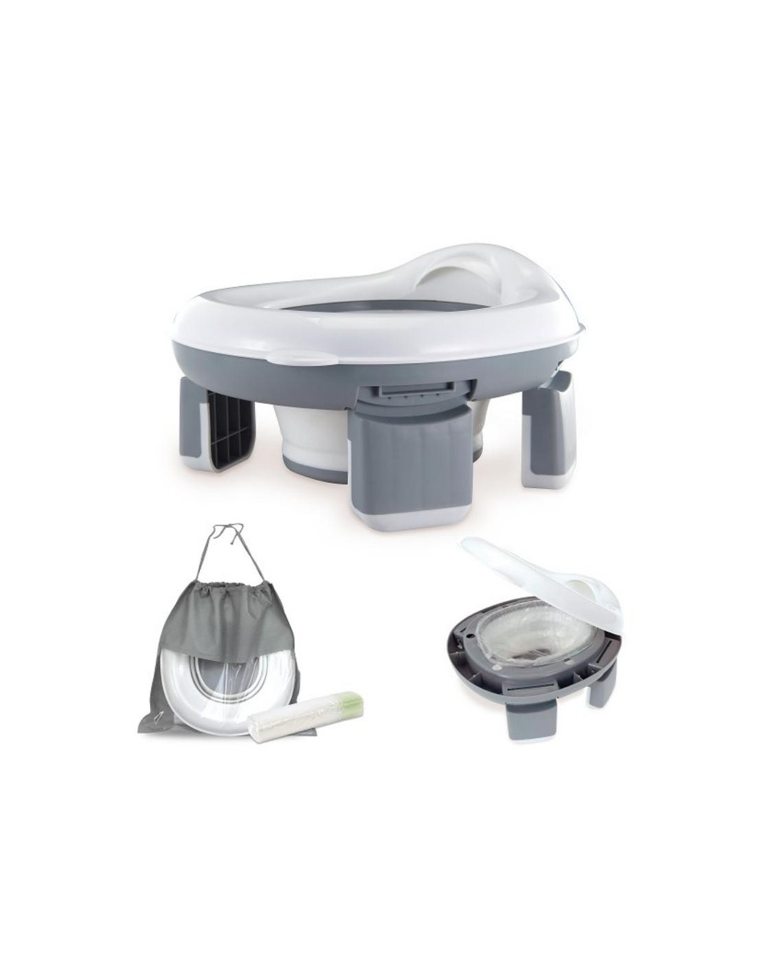 Orinal plegable y fácil de limpiar para usar con bolsas desechables ya incluidas. Se puede usar como reductor de w.c para facilitar el aprendizaje y que su uso sea seguro. Incluye bolsa de transporte.