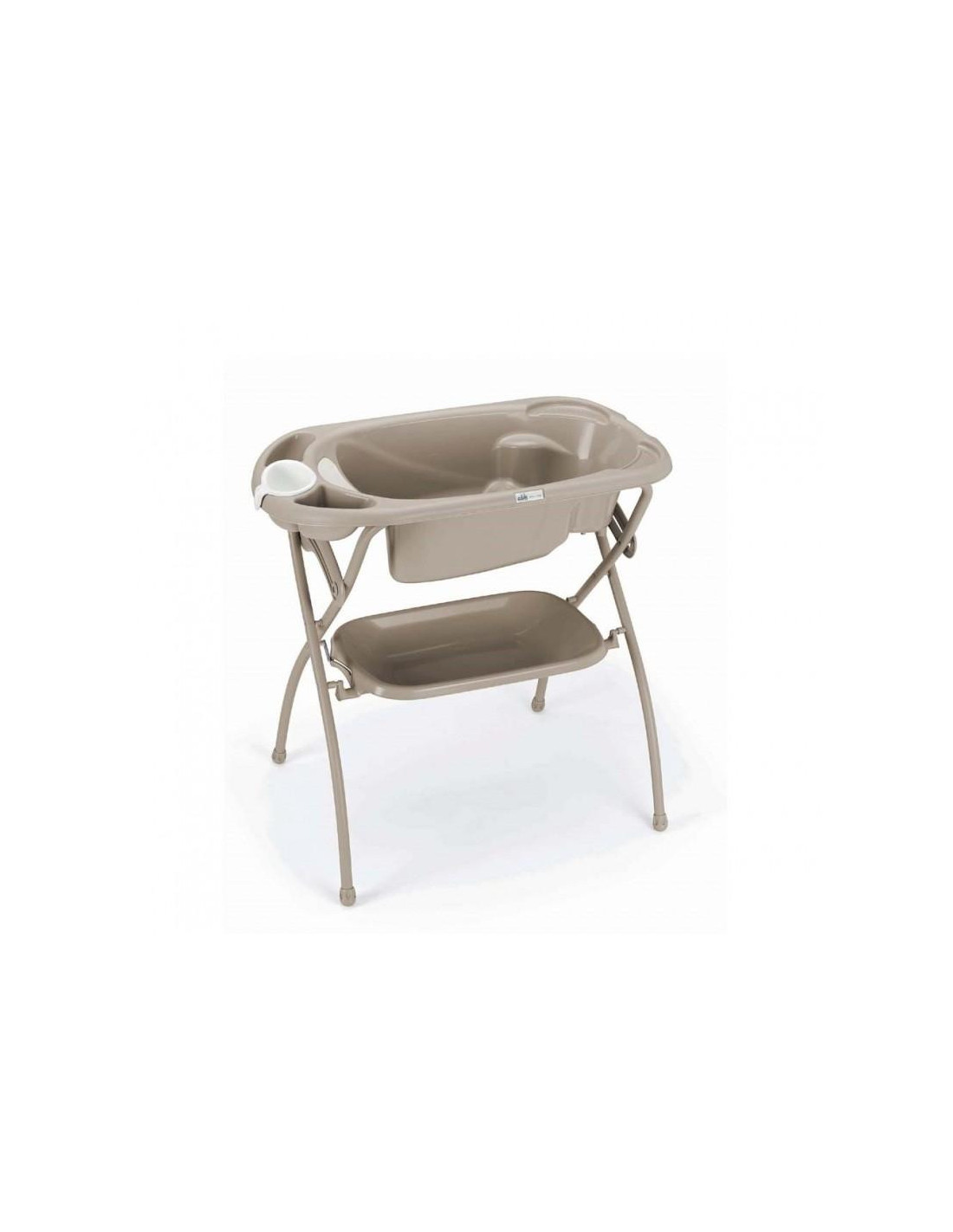 Dispone de dos asientos anatómicos con antideslizantes (de 0-6 meses y de 6-12 meses), compartimentos para el champú y la esponja, cazo para ducharlo, pies de soporte, tapón para desaguar, y bandeja porta objetos.