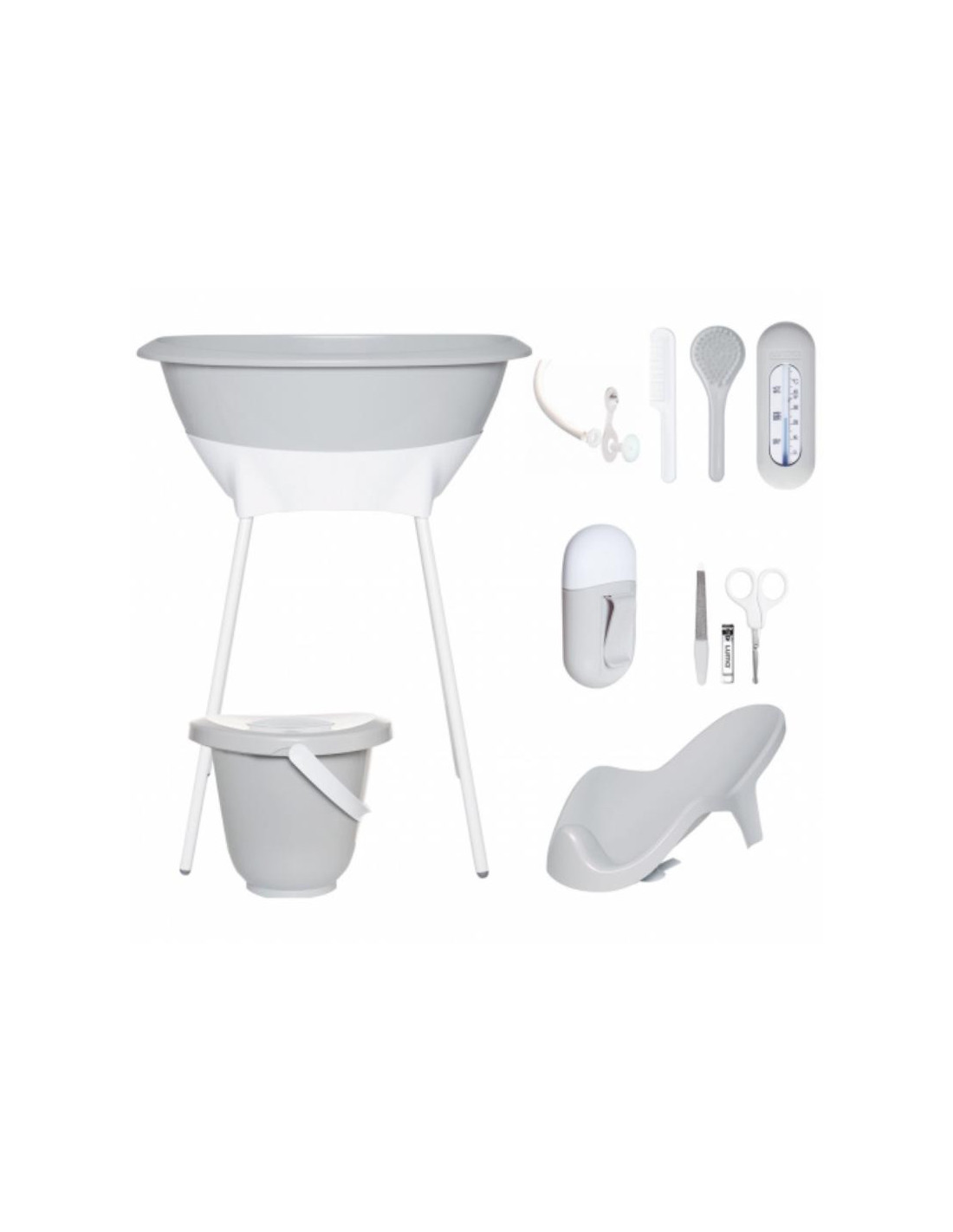 En este ser de baño de LUMA podrás encontrar todo lo que necesitas para cuidar de tu recién nacido. Contiene ocho artículos indispensables para el cuidado diario de tu bebé: bañera, soporte, cubo de pañales, asiento de baño, set de manicura, cepillo, peine, termómetro de baño y tubo de desagüe. Es todo lo que necesitas para tu bebé.