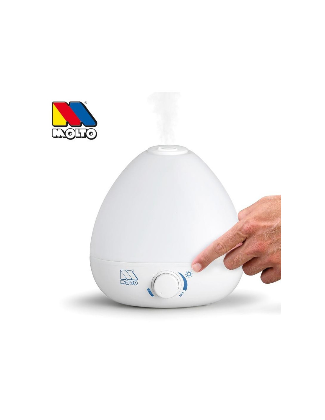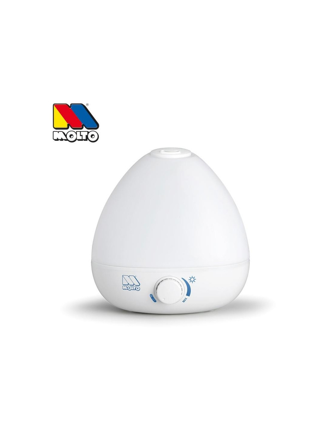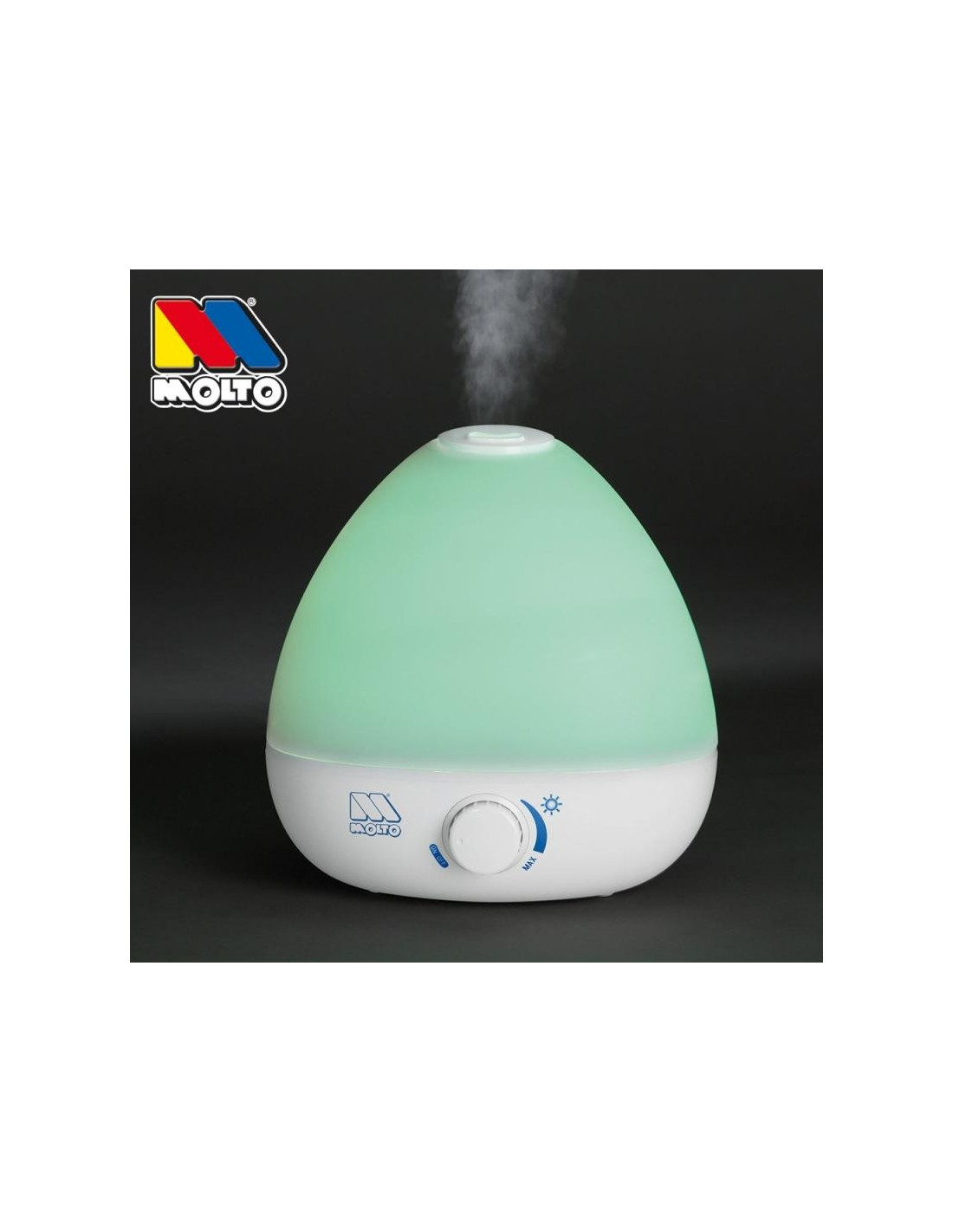 Humidificador de vapor frío con luces multicolores, esencias, boquilla regulable, regulador de vapor, eficiente en salas de 30 m3 y con una autonomía de 25 horas.