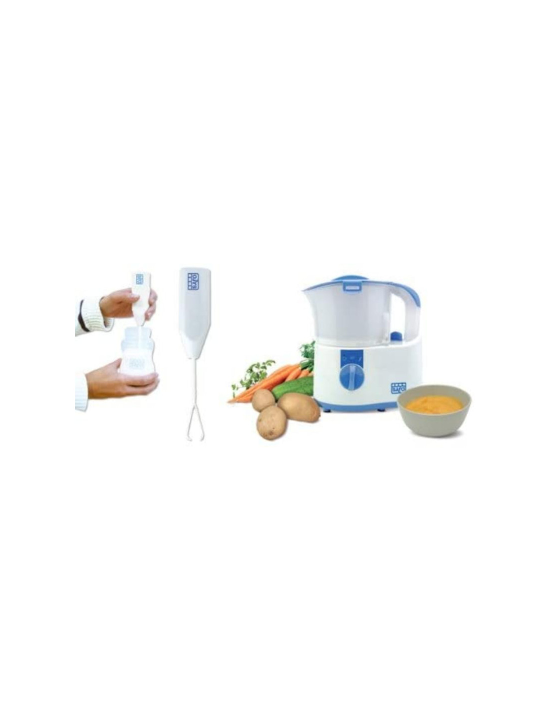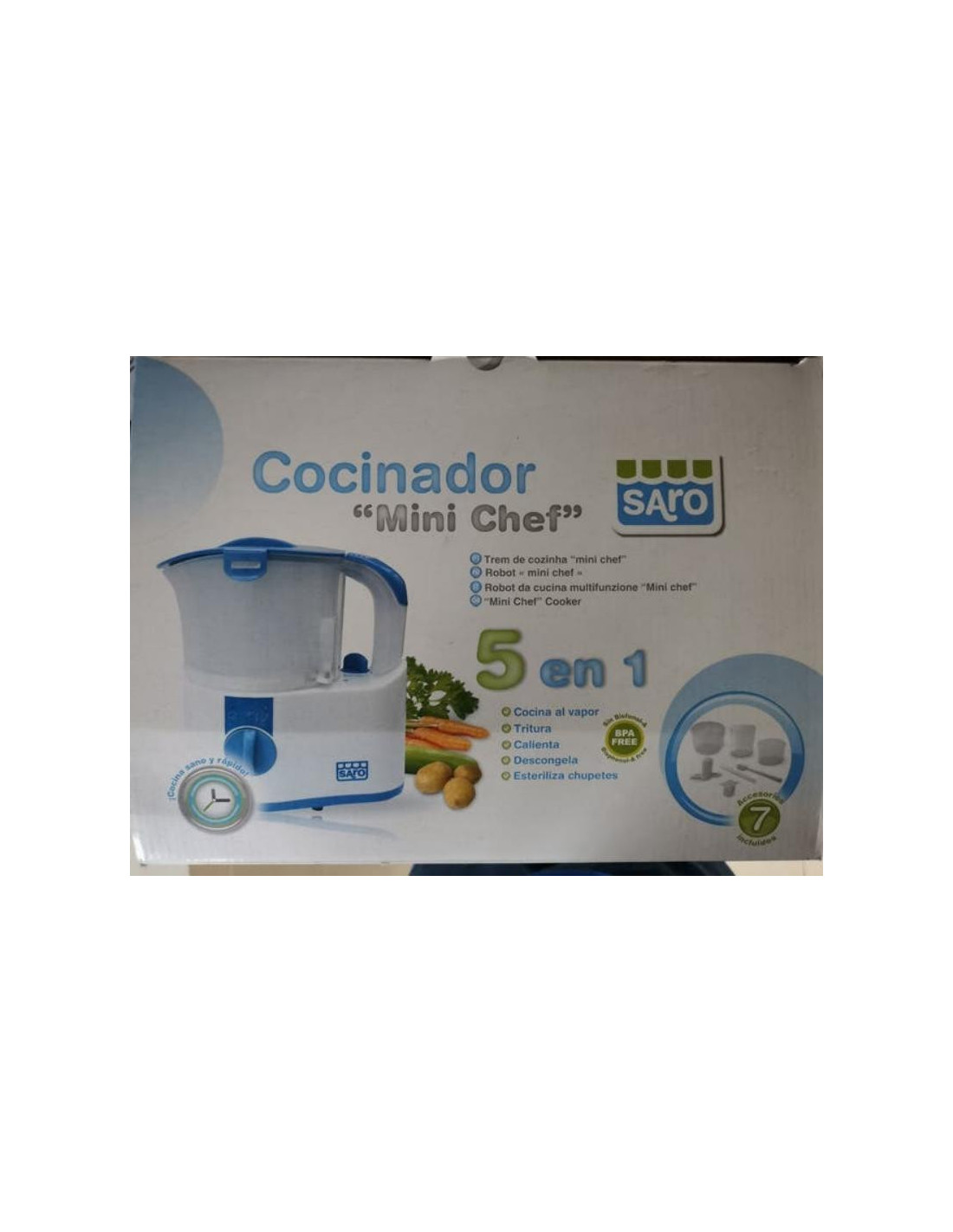 Un completo electrodoméstico 5 en 1 para, en poco tiempo, poder: cocinar al vapor, triturar la comida, calentar la leche o la papilla, descongelar, e incluso esterilizar los chupetes. Incluye todos los accesorios necesarios para su uso, sin necesidad de múltiples cacharros.