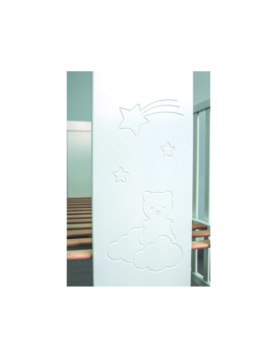 La cuna «Osito» es una encantadora pieza inspirada en la naturaleza, adornada con preciosos dibujitos infantiles que aportan un toque de magia y minimalismo al espacio del bebé. Su lateral móvil permite un acceso fácil y cómodo, facilitando el cuidado diario. La cuna «Osito» cuenta con ocho posiciones de somier, adaptándose a cada etapa del crecimiento del niño y garantizando su confort.