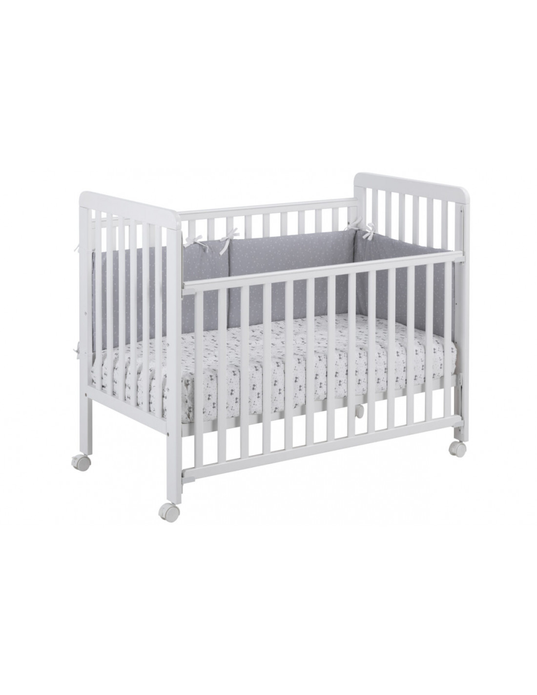 La cuna «Bari» está equipada con un juego de cuatro ruedas con freno, permitiendo un fácil movimiento y estabilidad cuando se necesita. Su somier multilaminas asegura un soporte óptimo para el descanso del bebé. Además, con la opción de colecho disponible al adquirir el kit por separado, se fomenta una mayor cercanía y comodidad durante las noches.