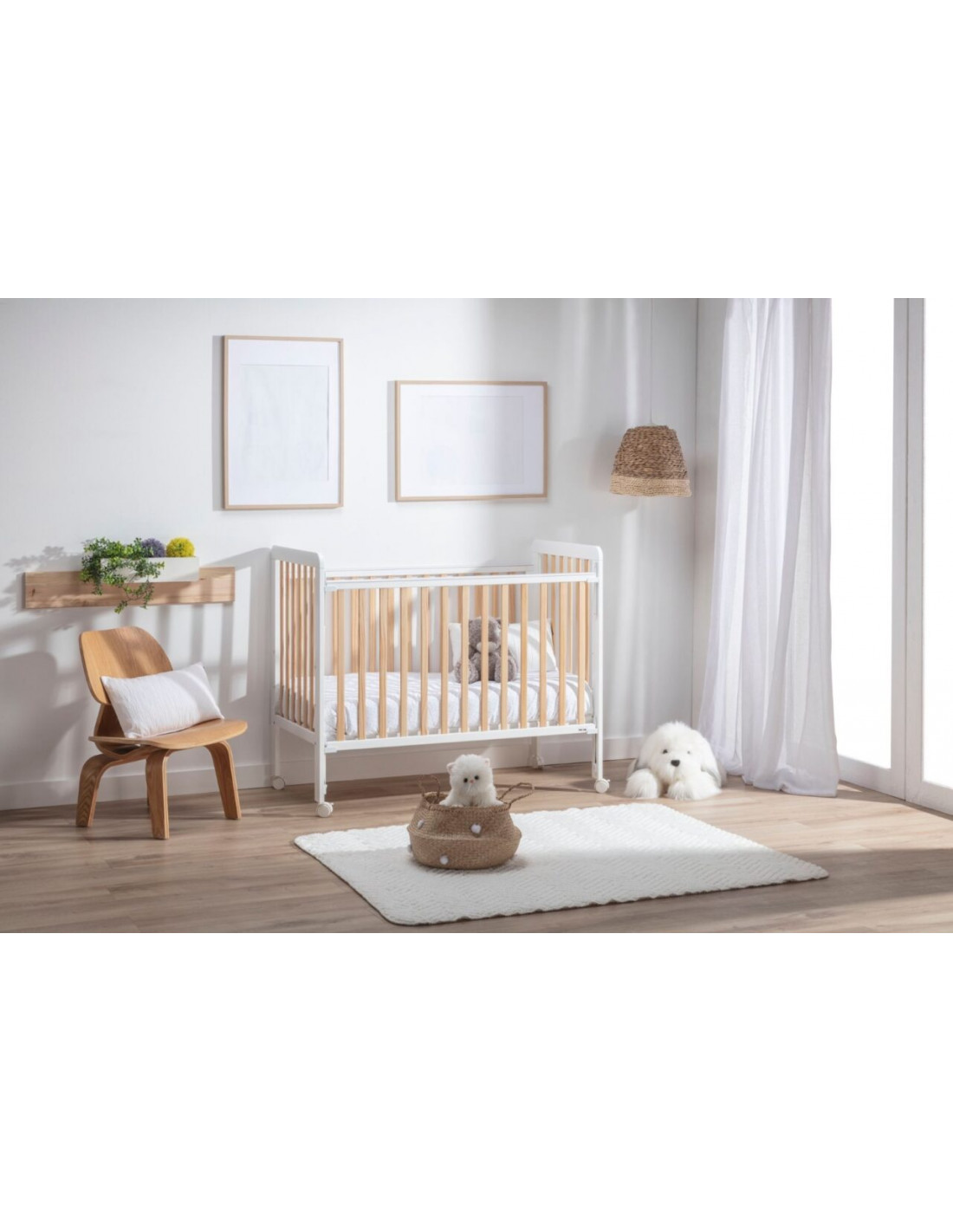 La cuna «Bari» es la expresión de la simplicidad más elegante, perfecta para aquellos que buscan un diseño limpio y sencillo sin comprometer la funcionalidad. Con un lateral abatible que se maneja con una sola mano, facilita el acceso al bebé en cualquier momento del día o de la noche. Esta cuna ofrece seis posiciones de altura de somier, adaptándose a las distintas etapas del crecimiento del niño.