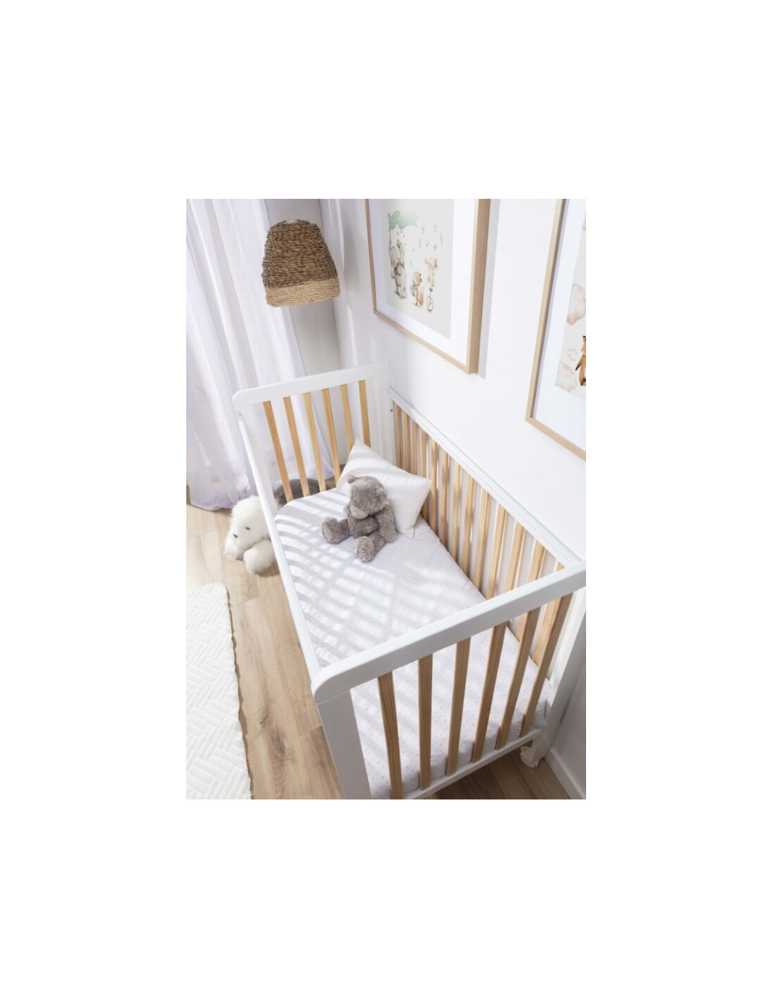 Incluye un plástico protector en el barandal, asegurando la durabilidad y la protección adicional que los papis apreciarán. Disponible en un elegante color blanco o en una moderna combinación de blanco y natural, la cuna «Bari» se adapta a cualquier estilo de decoración. Con medidas de 60×120 cm, es ideal para cualquier espacio, brindando confort y seguridad en un diseño compacto y refinado.