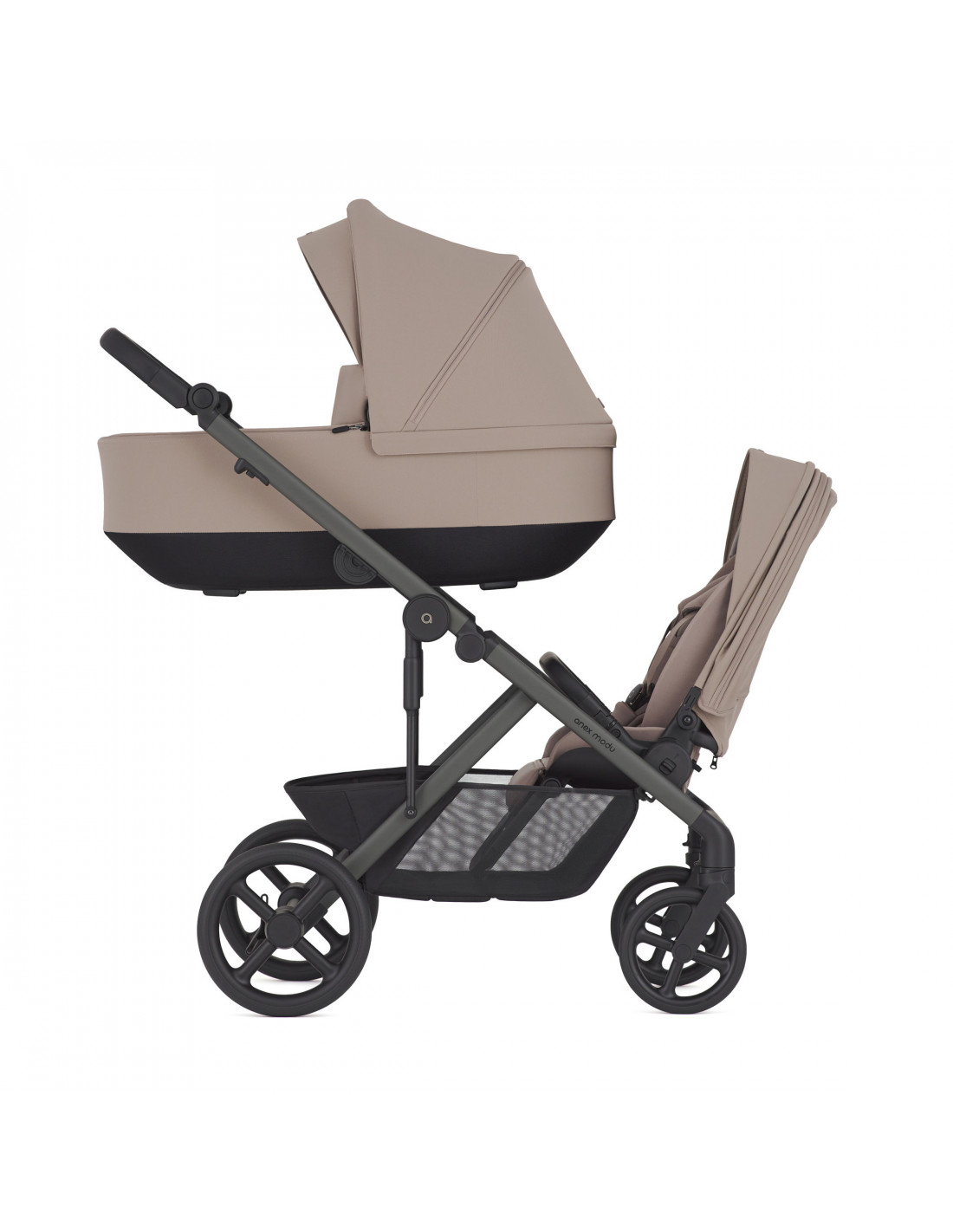 Una de las grandes ventajas del Anex Modu es su flexibilidad. Aunque está diseñado para gemelos o hermanos de edad similar, su estructura modular permite adaptarlo a tus necesidades diarias. Si solo necesitas pasear con un bebé, puedes retirar una de las unidades de asiento o capazo de forma rápida, haciéndolo más compacto y fácil de maniobrar. ¡La máxima adaptabilidad para cada situación!