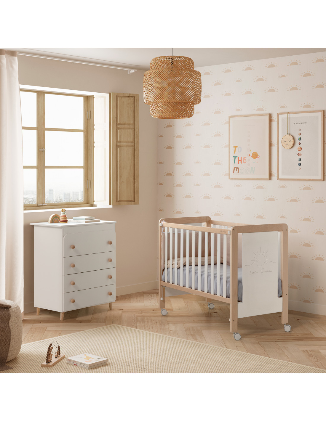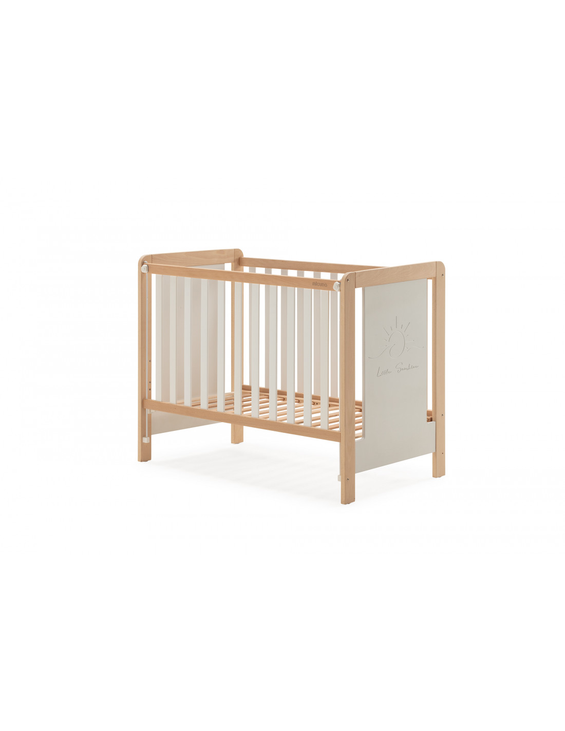 La Cuna Luciana de Micuna es la personificación del equilibrio visual: una estructura que mezcla el blanco lacado con la calidez de la madera natural. Es la pieza clave si buscas un estilo nórdico que no se sienta frío, aportando esa luz necesaria al dormitorio sin perder la textura orgánica que solo la madera de haya puede dar.