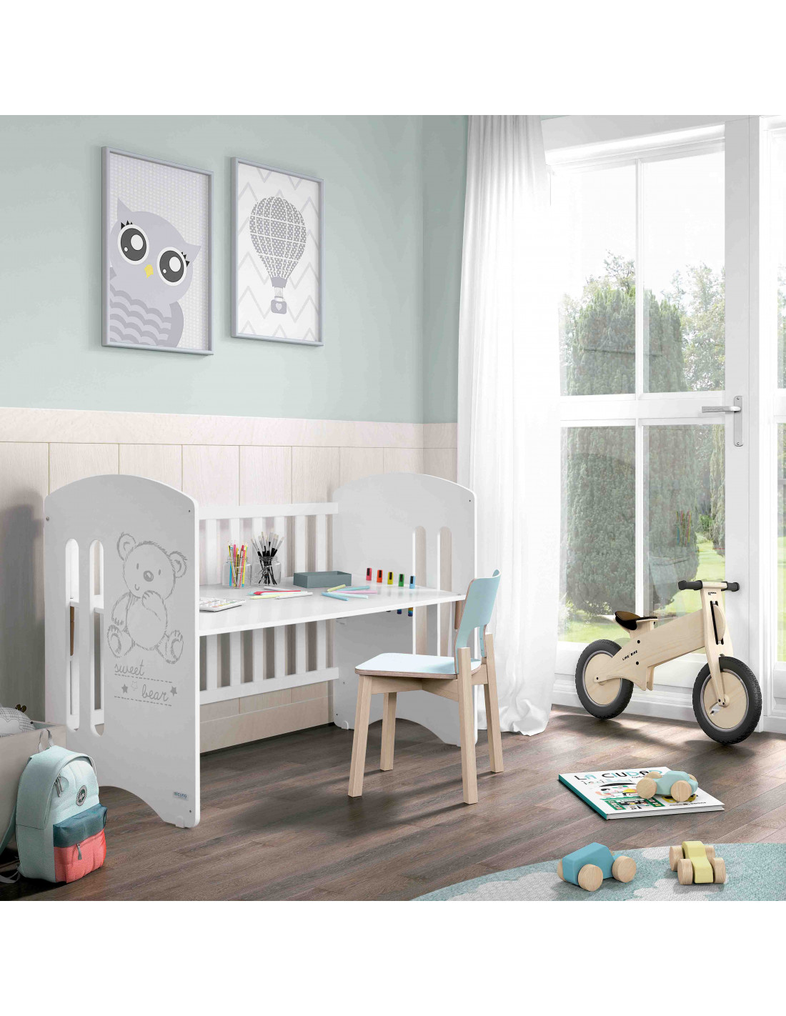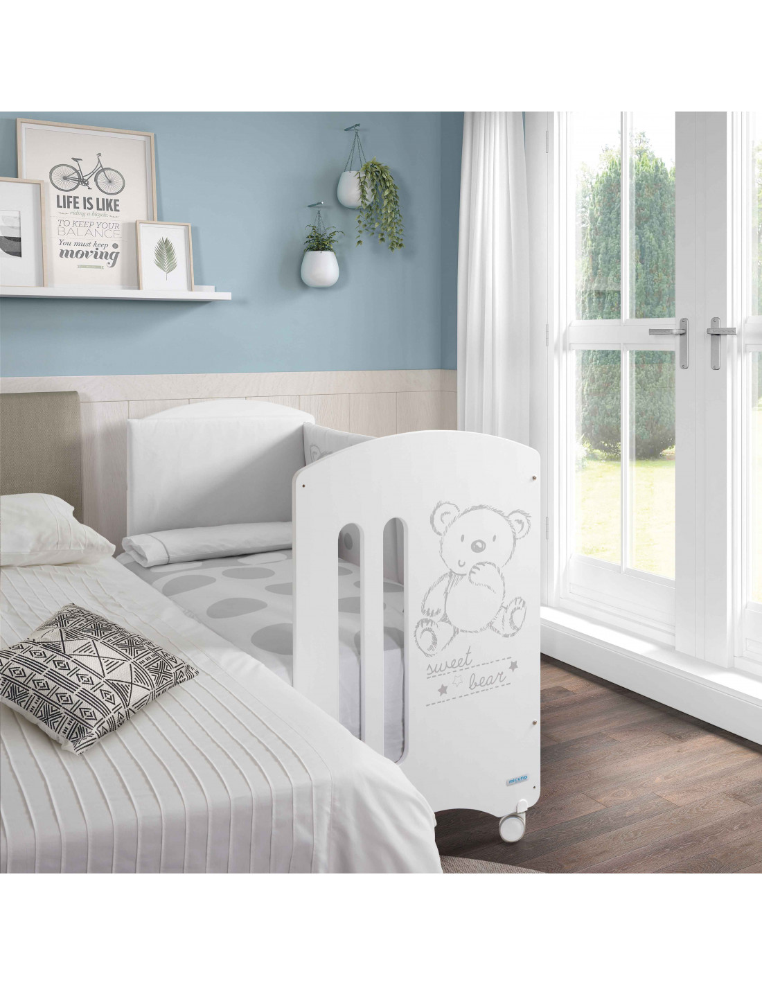 La Cuna Sweet Bear de Micuna es, probablemente, el diseño más icónico y tierno de la marca. No es solo una cuna blanca; es un refugio diseñado para transmitir calma a través de su entrañable grabado de un osito. Es la elección lógica para familias que buscan un estilo clásico, dulce y con la garantía de una robustez que ha acompañado a generaciones.