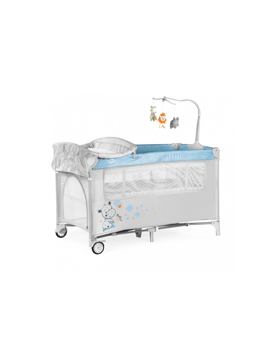 CUNA VIAJE COMPLET VAQUITA GRIS CELESTE