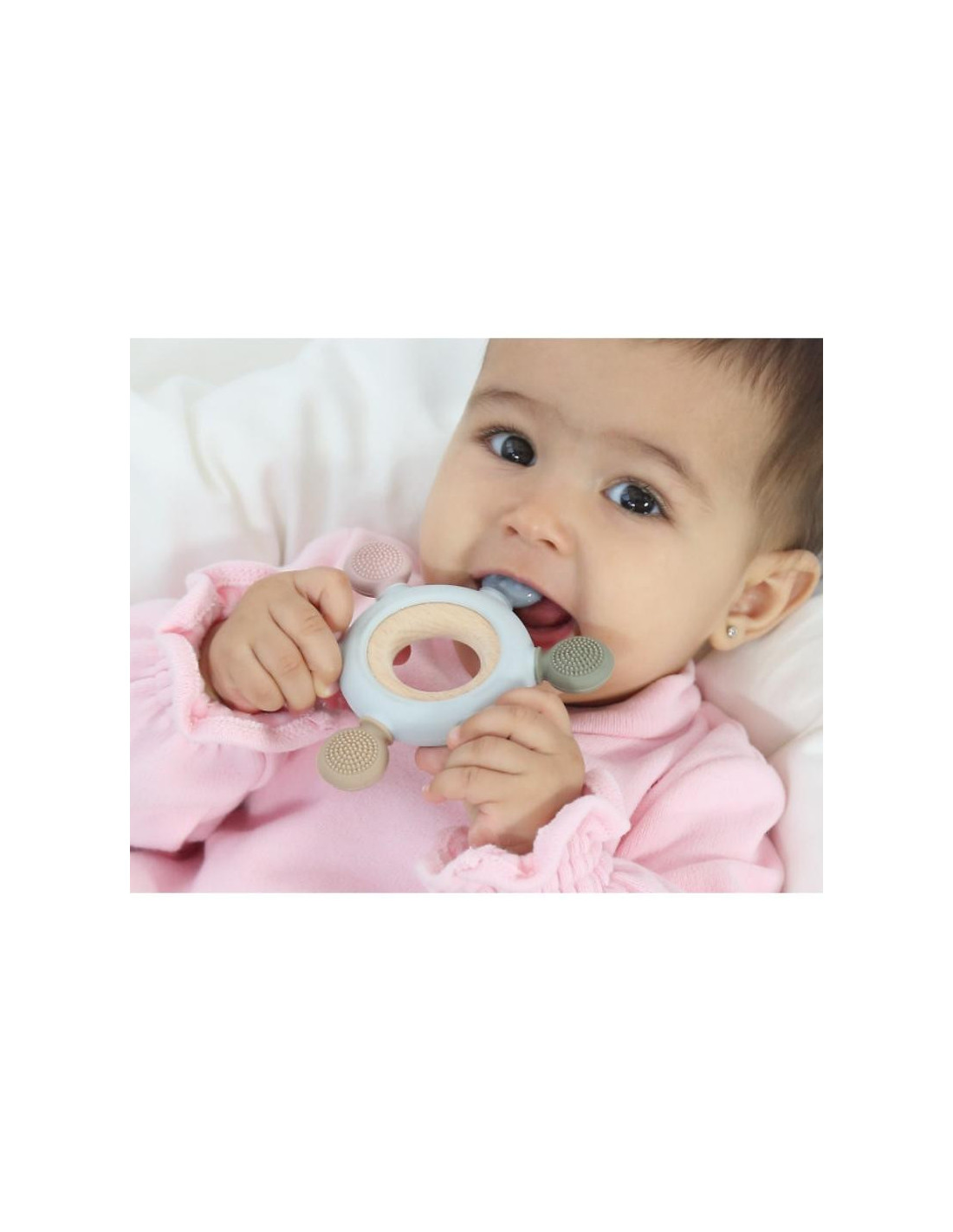 Para aliviar estos síntomas, debemos dar al bebé algo para morder. Para ello contamos con una completa colección de mordedores en silicona y madera de haya, muy fáciles de sujetar, con diferentes colores y texturas para masajear las encías, y mejorar los síntomas de la dentición de tu bebé.