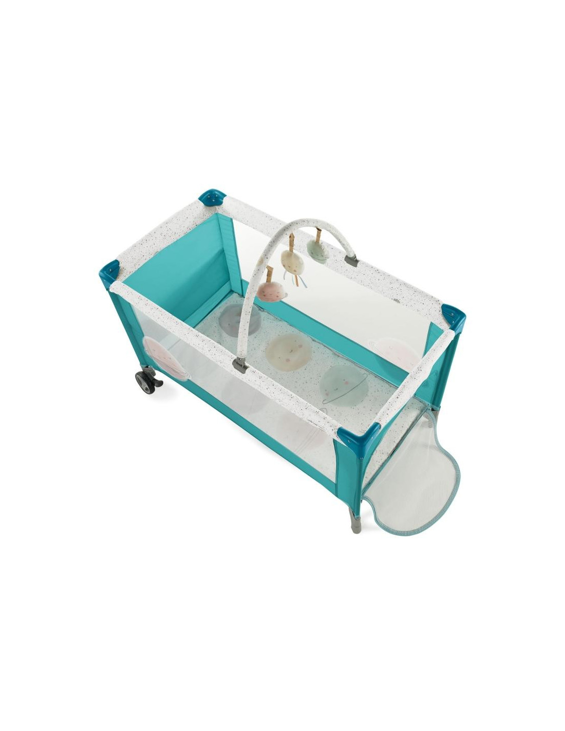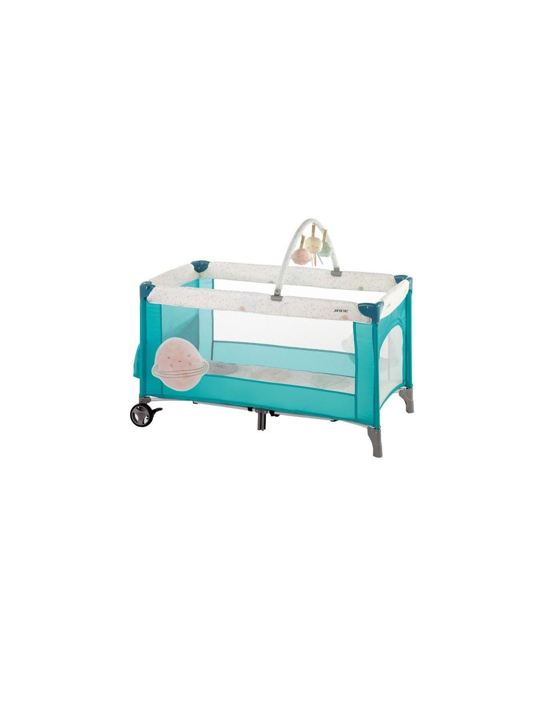 Características de la cuna viaje Duo Level Toys Cosmos Cuna plegable apta desde recién nacido hasta los 36 meses. Cuna de un nivel con gatera lateral con cierre de cremallera. Plegable. Cuna con ruedas y freno en un lateral para mejor manejo. Bolsillo lateral de gran capacidad. Incluye barra de juegos. Colchón no incluido, sólo incluye una fina colchoneta de base de 2 cm. Serigrafía lateral. Esquinas de seguridad. Incluye bolsa de fácil transporte. Peso: 10,5 kg. Medidas: