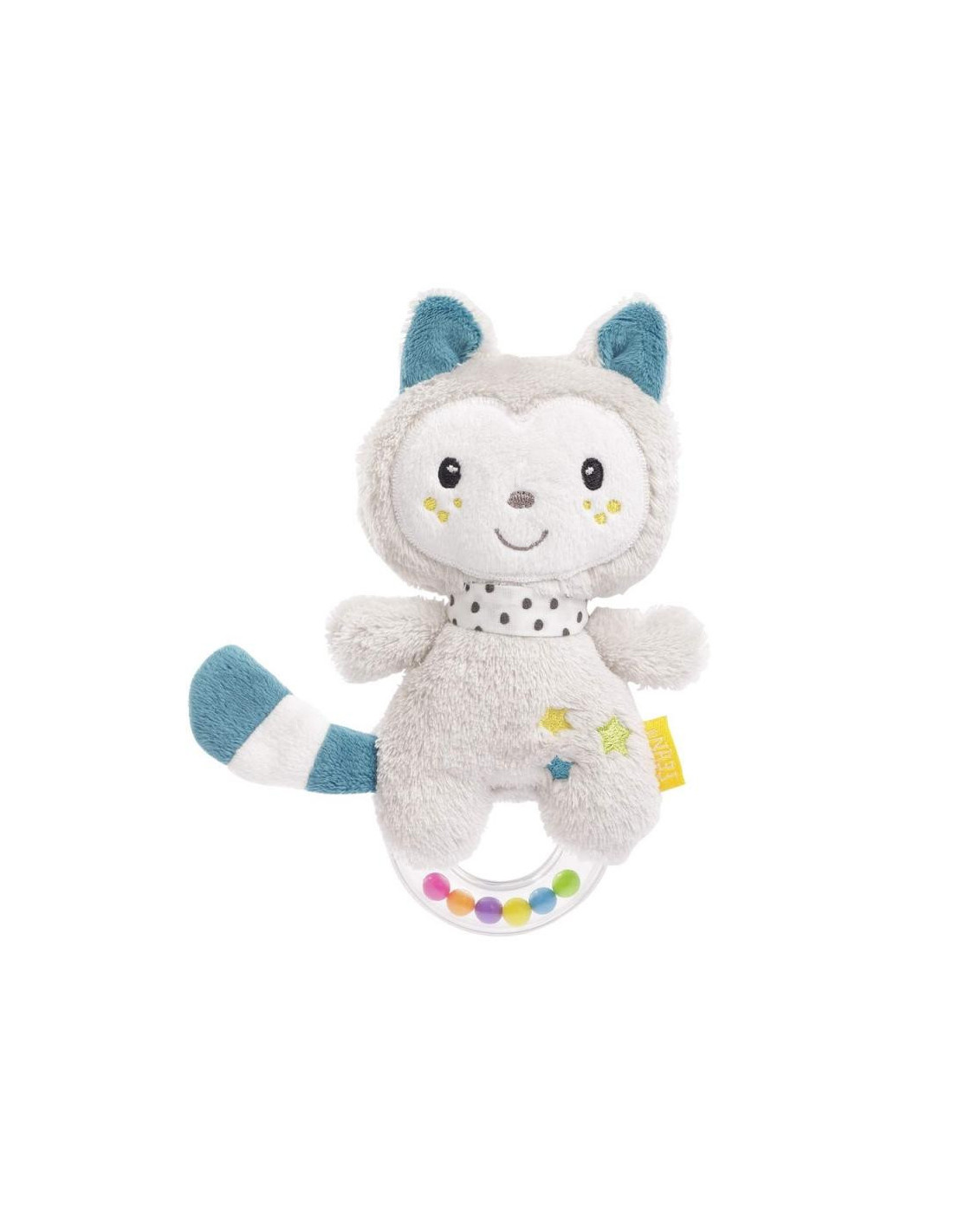 Fácil de agarrar, estimula la curiosidad natural y anima a agitar y jugar: el colorido sonajero de anillo con cuentas en el mango es un fiel compañero para los bebés desde el nacimiento.