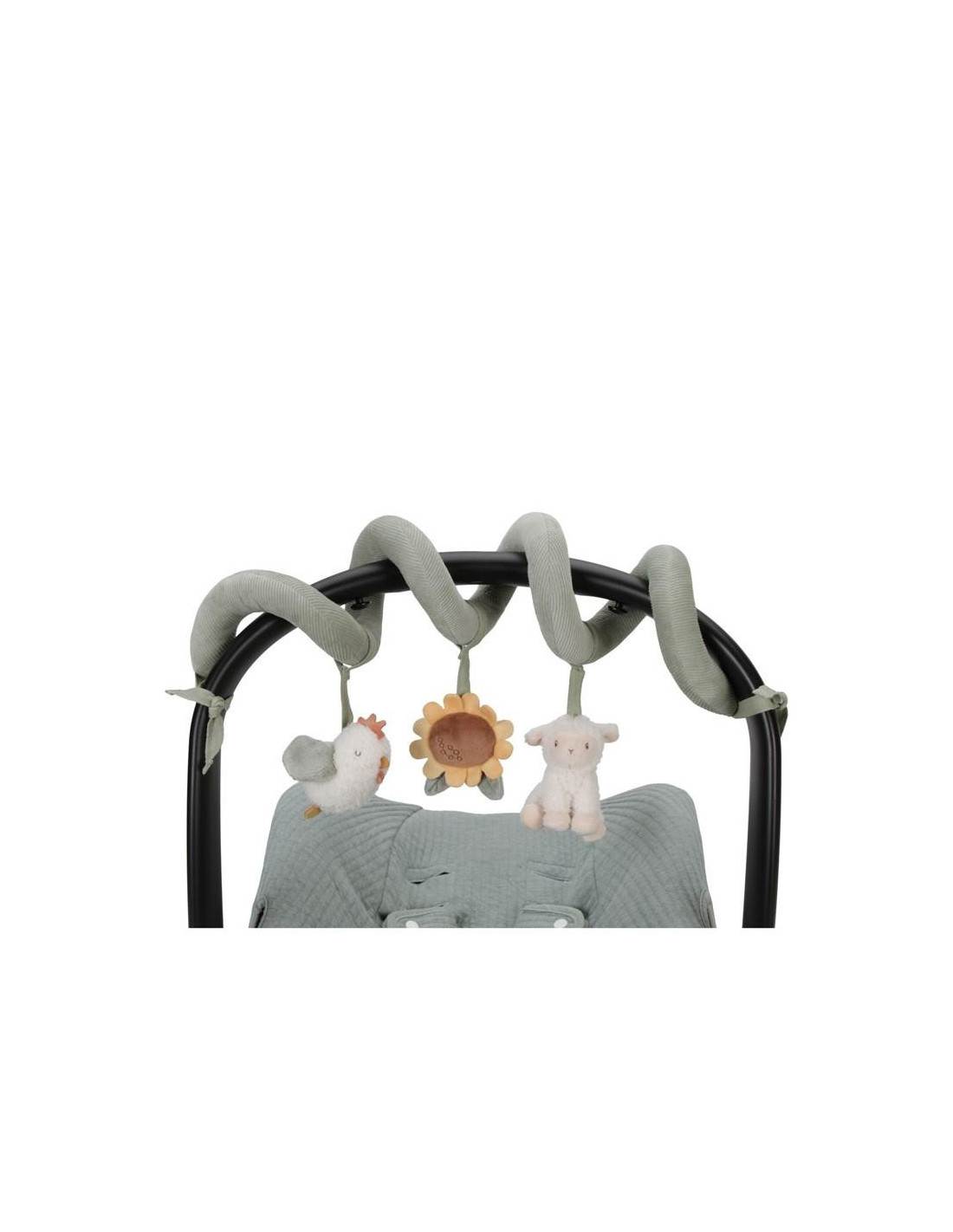 ¡Mira, siente y descubre! Esta divertida espiral de actividades mantendrá entretenidos a los bebés tanto en casa como mientras viajan. Conecta fácilmente este práctico juguete a cualquier cosa, desde una cuna hasta un parque o una silla para el coche. Esta espiral fortalece los sentidos y estimula la coordinación mano-ojo. La espiral de actividades está confeccionada en pana con algodón y presenta una pequeña oveja, una alegre gallina y un hermoso girasol.