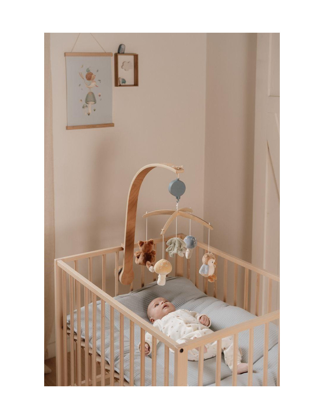 Sigue el sonido y observa cómo giran el pequeño zorro y el búho. Este simpático móvil musical de madera tiene un efecto relajante en los bebés gracias a la dulce canción de cuna. Cuenta con cinco juguetes colgantes diferentes para mirar de la colección Forest Friends: el zorro, el búho, dos setas y una hoja. Mientras tu pequeño disfruta del movimiento de cada juguete, el móvil musical estimula el desarrollo visual. El móvil musical es adecuado desde el nacimiento y es fácil de colocar en la cuna o el parque infantil. ¡ADVERTENCIA! Coloca este juguete fuera del alcance del niño. Para evitar posibles lesiones por enredos, retira este juguete cuando el niño comience a intentar levantarse sobre sus manos y rodillas en posición de gateo. Requiere montaje por parte de un adulto.