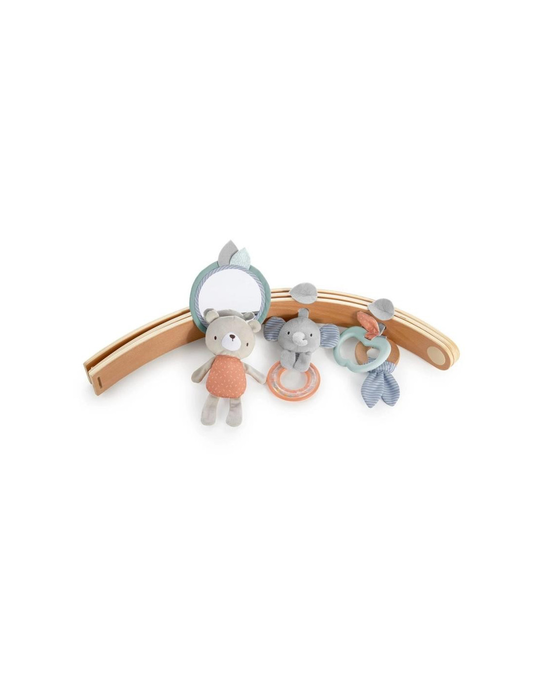El colgador de juguetes de madera natural con estampados reversibles combina a la perfección con la decoración de tu hogar
