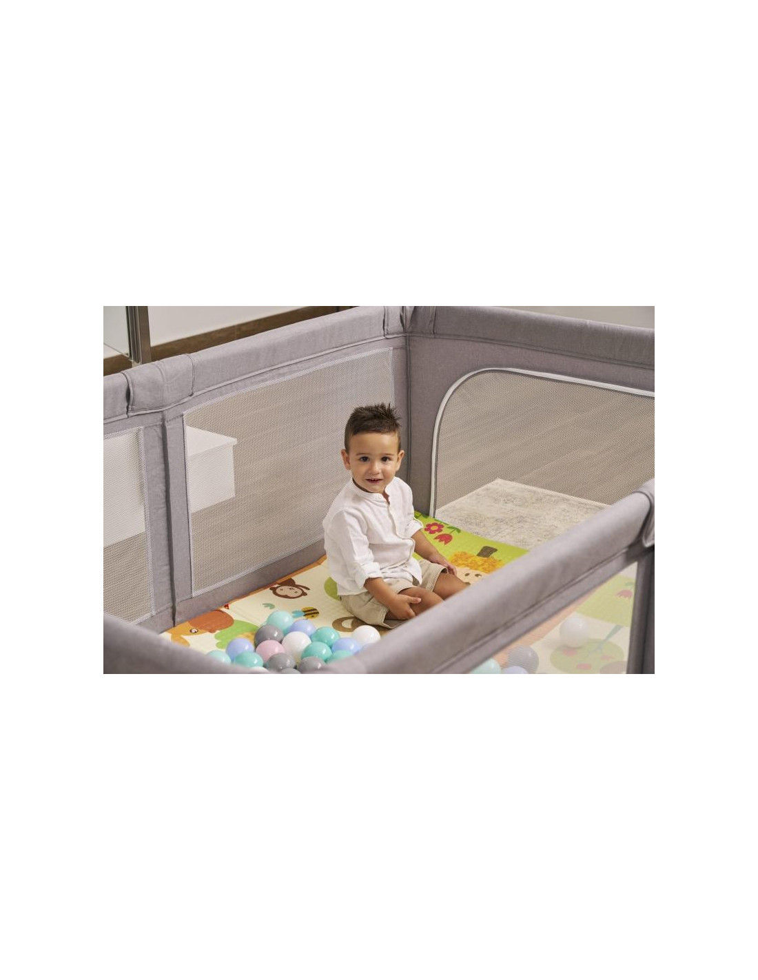 Con nuestro parque de juegos para bebé crearás un espacio de juego seguro y estimulante para jugar y explorar. Tendrás la tranquilidad de que tu pequeño se divierte con total seguridad mientras desarrolla sus habilidades motoras y sensoriales. Además, puedes complementarlo con una alfombra de juegos para mayor confort y protección.