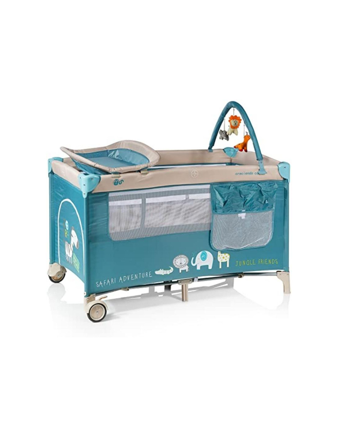 Cuna que incorpora la posibilidad de modificar el nivel del colchón a 2 alturas diferentes facilitando el acceso interior de la cuna. ? Nivel superior: +0meses/3 ó 4 meses (hasta que el bebé empiece a sentarse o levantarse sobre sus brazos). ? Incorpora ruedas para su fácil transporte y ventana con cremallera. ? Bolsa de transporte. ? Serigrafia lateral. ? Nuevas esquinas de seguridad según norma EN-716/2013. ? Incluye barra de juegos con simpáticos peluches. ? Incluye cambiador de serie y compartimento para juguetes en un lateral.
