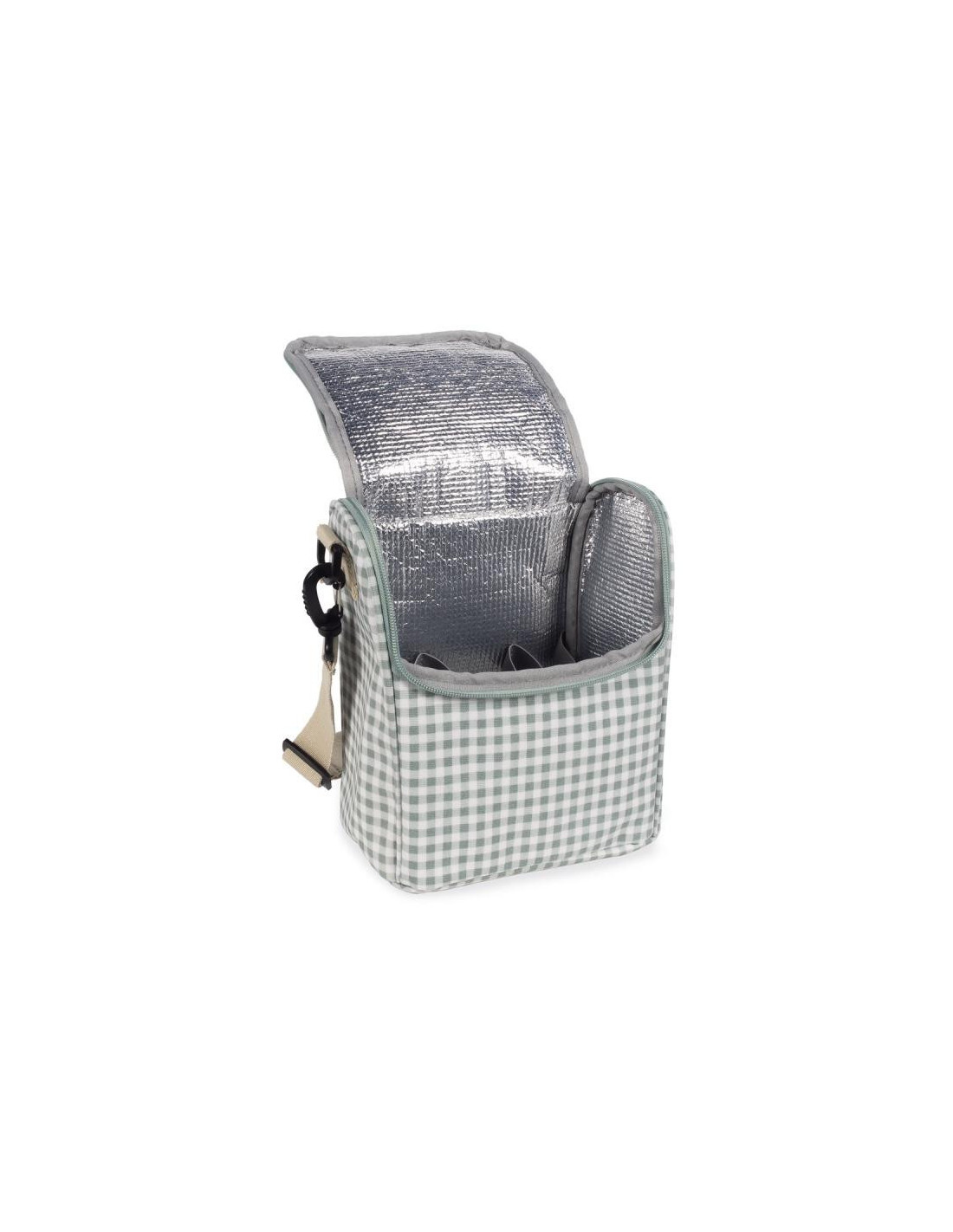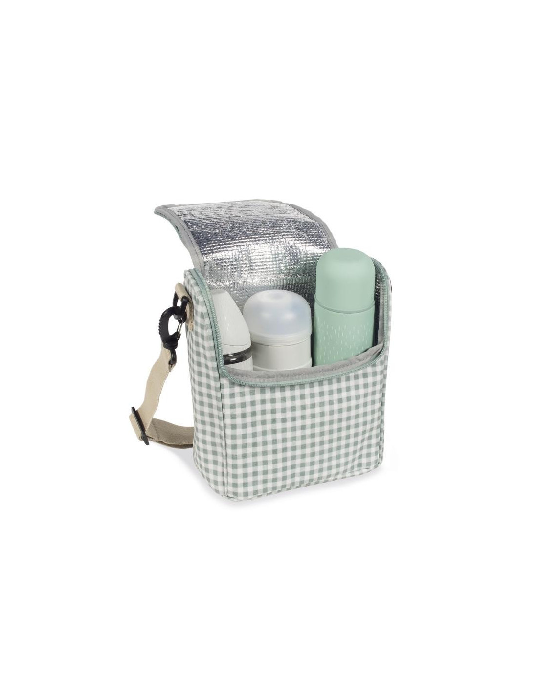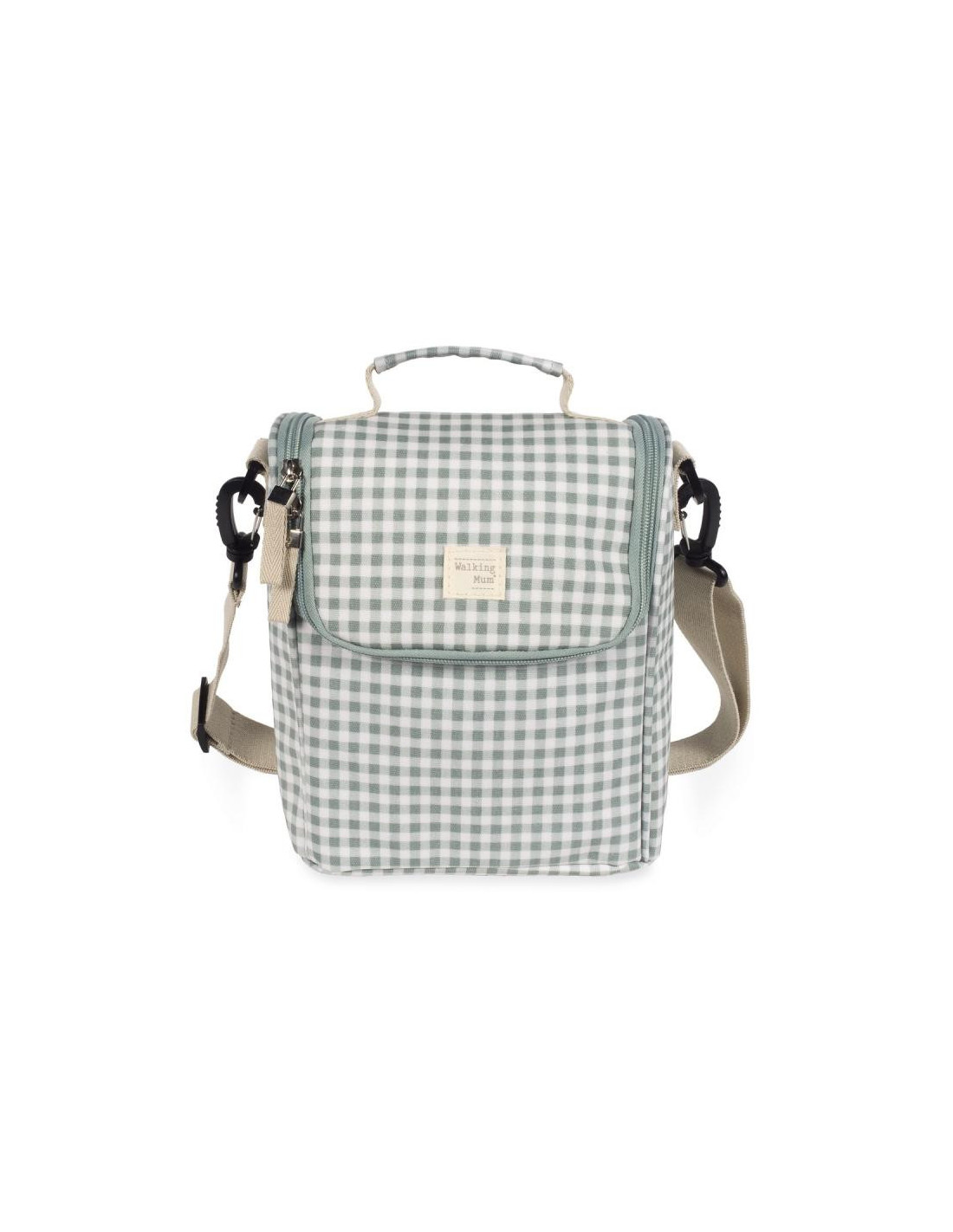 Bolsa comidas térmica I Love Vichy verde. Mantiene la temperatura durante 4 horas. También incorpora una asa larga para poder colgarla en el hombro y asa corta de mano. Gran calidad y mucho estilo. Fabricada en un material resistente y de fácil limpieza. Walking Mum protege a tu bebé utilizando los mejores tejidos, libres de colorantes azoicos y sustancias nocivas para la salud. Nuestra colección Walking Mum guarda toda la calidad de la marca Pasito a Pasito pero con un particular sello de estilo urbano y moderno que no pasa desapercibido, para vestir diferente los paseos con tu bebé. Las bolsas de maternidad de esta línea son más sport y prácticas, especialmente pensadas en mamás y papás modernos que aprecian los diseños más actuales y en tendencia sin dejar de lado la calidad y la funcionalidad de los accesorios que complementan y hacen más cómodos todos los paseos con sus bebés. Especificaciones: Materiales: 100% algodón plastificado. Medidas: 26X23X12 cm.