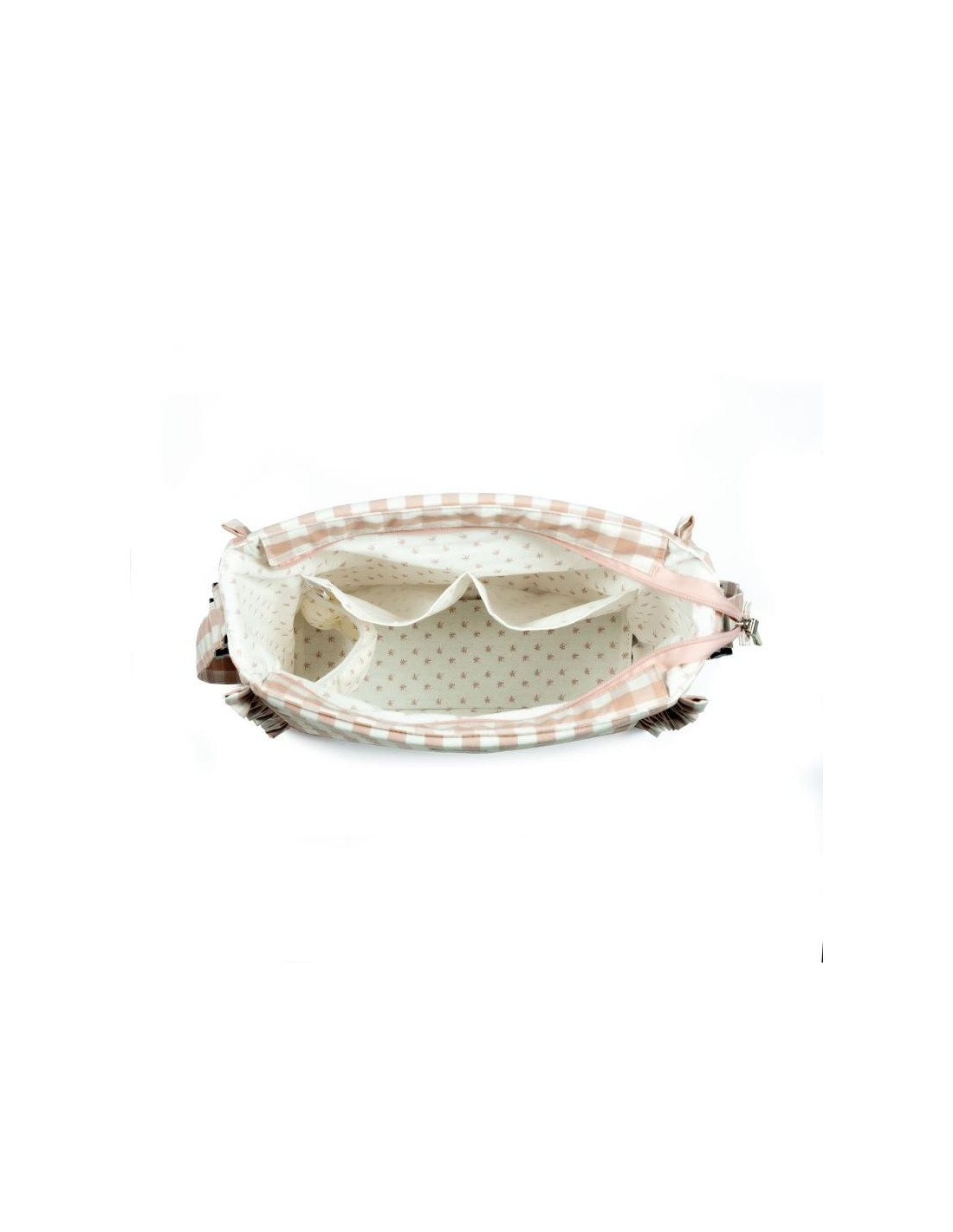 Bolso cambiador Remy en cuadro vichy XL rosa para silla de paseo que incluye cambiador para bebe. Bolsa canastilla muy ligera, resistente y de gran capacidad para llevar todo lo necesario para el paseo del bebe. Tiene multiples bolsillos para poder tener todo ordenado y a mano. La bolsa tiene un sistema universal de fijación, con 2 asas cortas ajustables que facilita la colocación en cualquier modelo de silla de paseo. También incorpora una asa larga para poder colgarla en el hombro. Gran calidad y mucho estilo. Fabricada en un material resistente y de fácil limpieza. Walking Mum protege a tu bebé utilizando los mejores tejidos, libres de colorantes azoicos y sustancias nocivas para la salud. Nuestra colección Walking Mum está diseñada con un particular sello de estilo urbano y moderno que no pasa desapercibido, para vestir diferente los paseos con tu bebé. Las bolsas de maternidad de esta línea son más sport y prácticas, especialmente pensadas en mamás y papás modernos que aprecian los diseños más actuales y en tendencia sin dejar de lado la calidad y la funcionalidad de los accesorios que complementan y hacen más cómodos todos los paseos con sus bebés. Especificaciones: Materiales: 100% algodón. Color: Rosa. Medidas: 32X12X32 cm.