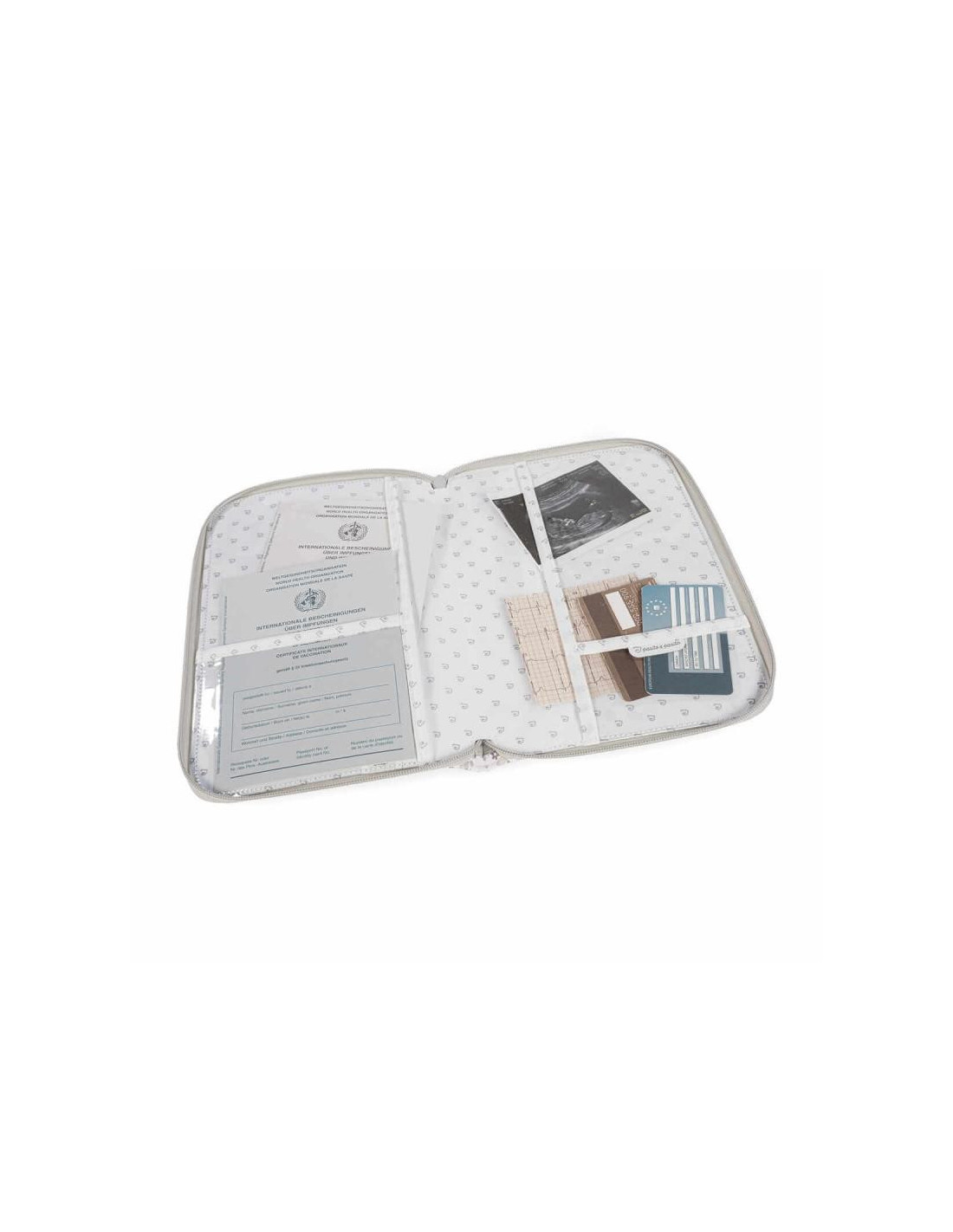 Este moderno y bonito libro de nacimiento para bebé Delia es un funcional portadocumentos de diseño a juego con la bolsa de maternidad. Un complemento indispensable para llevar contigo a todas partes que te ayudará a tener ordenada toda la documentación y papeles médicos de tu bebé. Tambien es una buena idea como libro donde puedes guardar documentos con progresos, datos importantes y todo lo que quieras conservar relacionado con tu bebé. Este libro portadocumentos esta elaborado en resistente y suave polipiel impresa con flores, cuenta con bolsillos en cada lado y está forrado en el interior.