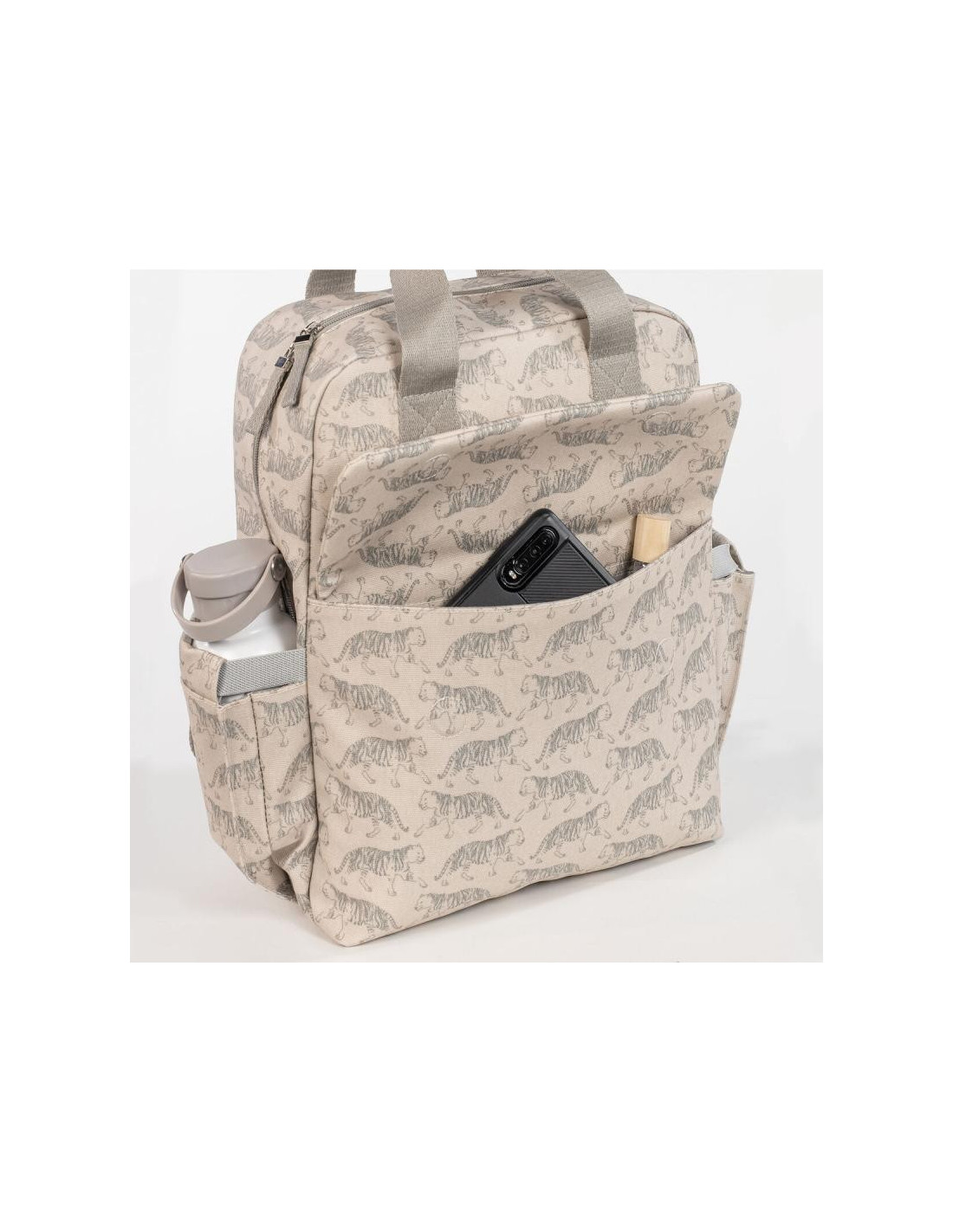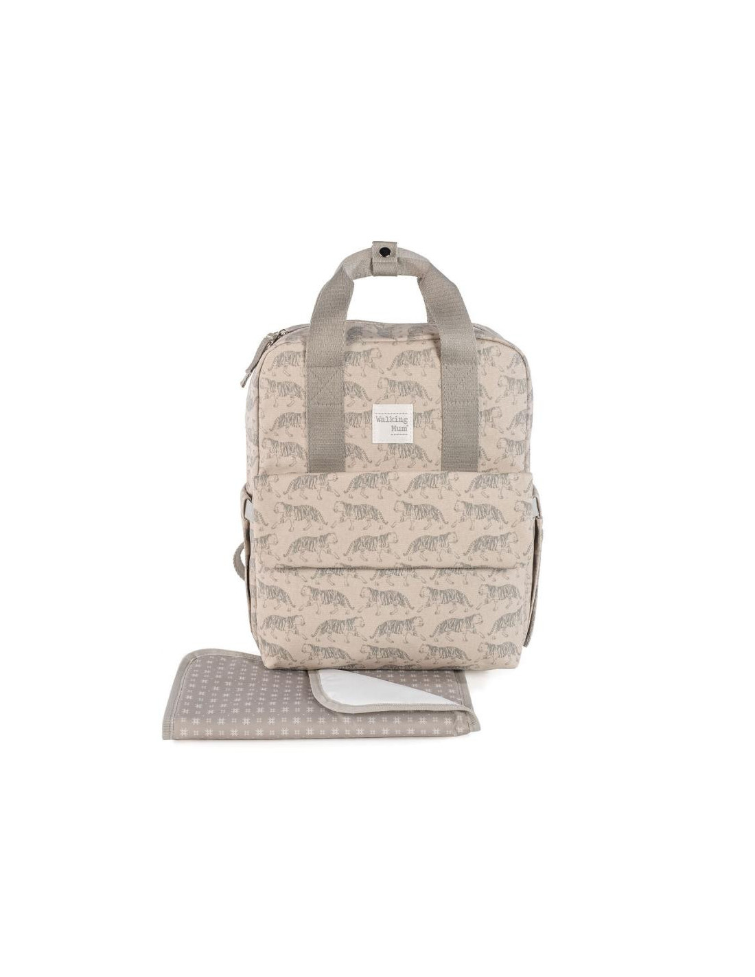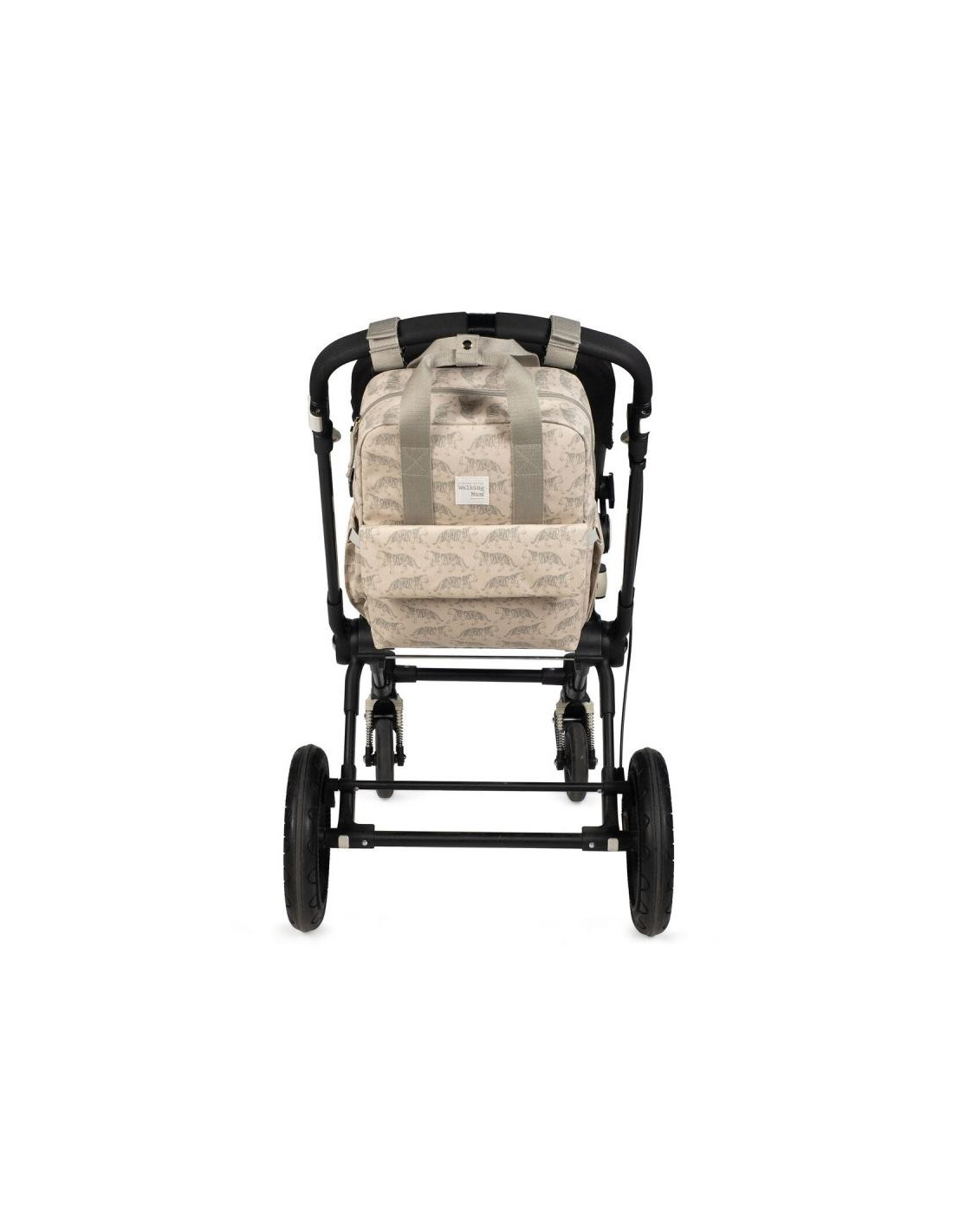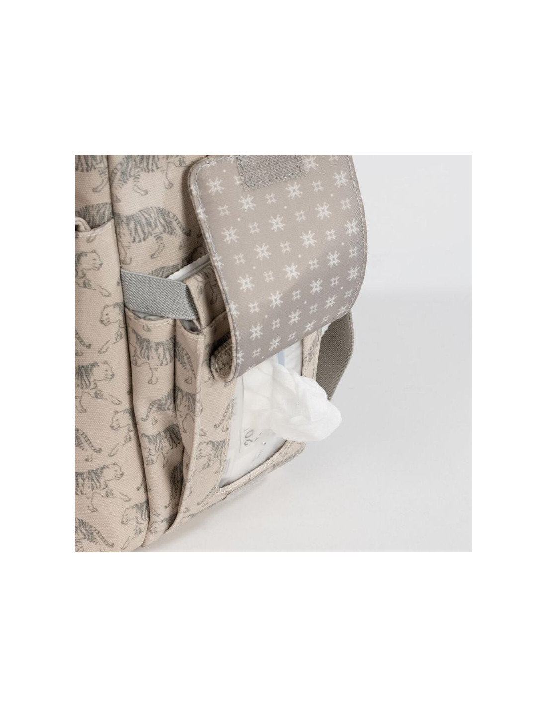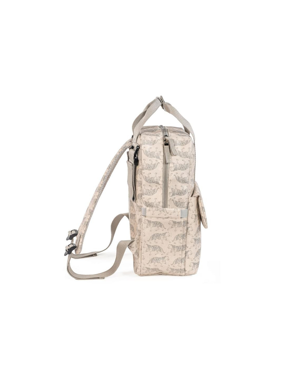Una bolsa canastilla y mochila al mismo tiempo, muy moderna y urbana, ideal para llevar tus cosas y las de tu bebé, con mucho estilo, a todos sus paseos. La bolsa Sabana con estampado de tigres arena para silla de paseo es un modelo multifunción muy ligero, resistente y de gran capacidad para llevar todo lo necesario en el paseo del bebe. Su esquema ofrece múltiples bolsillos exteriores e interiores para poder tener todo ordenado y a mano. Tiene bolsillos para guardar los biberones y mantenerlos seguros, elásticos para colocar cubiertos, para las toallitas húmedas, también tiene un funda para la botella de agua y otros más. Incluye un cambiador a juego con el bolso de maternidad y un bolsillo plastificado para almacenar la ropa mojada y aislar la humedad del resto de la mochila. El bolso incluye 2 asas cortas ajustables que facilitan la colocación en cualquier modelo de silla de paseo, asas de mano y correas acolchadas para colgar en los hombros hacia la espalda, sin generar molestias por el peso. Gran calidad y mucho estilo. Fabricada en un material resistente y de fácil limpieza. Walking Mum protege a tu bebé utilizando los mejores tejidos, libres de colorantes azoicos y sustancias nocivas para la salud. Nuestra colección Walking Mum guarda toda la calidad de la marca Pasito a Pasito pero con un particular sello de estilo urbano y moderno que no pasa desapercibido, para vestir diferente los paseos con tu bebé. Las bolsas de maternidad de esta línea son más sport y prácticas, especialmente pensadas en mamás y papás modernos que aprecian los diseños más actuales y en tendencia sin dejar de lado la calidad y la funcionalidad de los accesorios que complementan y hacen más cómodos todos los paseos con sus bebés. Especificaciones: Materiales: 100% algodón plastificado. Medidas: 28X37X12 cm.