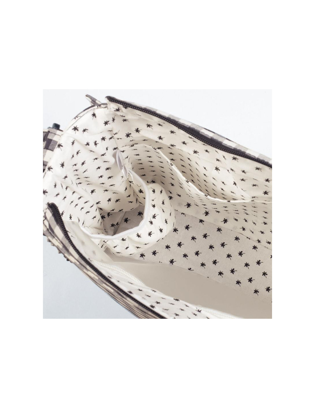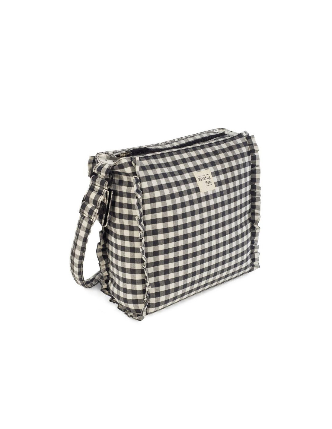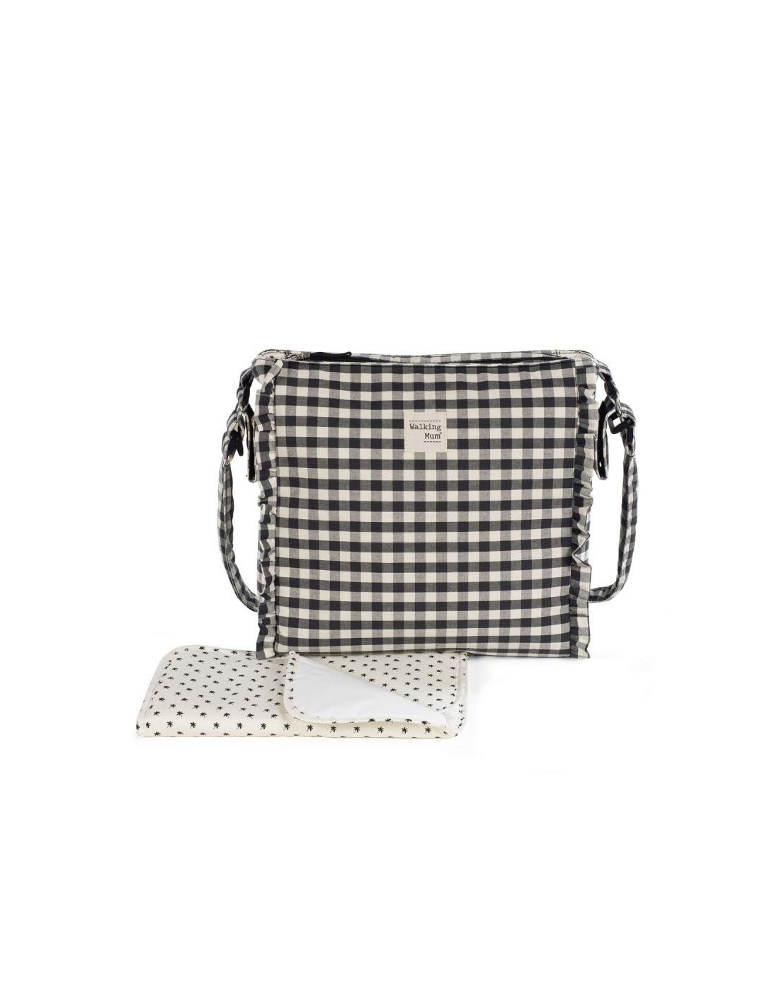Bolso cambiador Remy en cuadro vichy XL negro para silla de paseo que incluye cambiador para bebe. Bolsa canastilla muy ligera, resistente y de gran capacidad para llevar todo lo necesario para el paseo del bebe. Tiene multiples bolsillos para poder tener todo ordenado y a mano. La bolsa tiene un sistema universal de fijación, con 2 asas cortas ajustables que facilita la colocación en cualquier modelo de silla de paseo. También incorpora una asa larga para poder colgarla en el hombro. Gran calidad y mucho estilo. Fabricada en un material resistente y de fácil limpieza. Walking Mum protege a tu bebé utilizando los mejores tejidos, libres de colorantes azoicos y sustancias nocivas para la salud. Nuestra colección Walking Mum está diseñada con un particular sello de estilo urbano y moderno que no pasa desapercibido, para vestir diferente los paseos con tu bebé. Las bolsas de maternidad de esta línea son más sport y prácticas, especialmente pensadas en mamás y papás modernos que aprecian los diseños más actuales y en tendencia sin dejar de lado la calidad y la funcionalidad de los accesorios que complementan y hacen más cómodos todos los paseos con sus bebés. Especificaciones: Materiales: exterior 65% algodón ? 35% poliéster / interior 100% algodón. Color: Negro. Medidas: 32X12X32 cm.